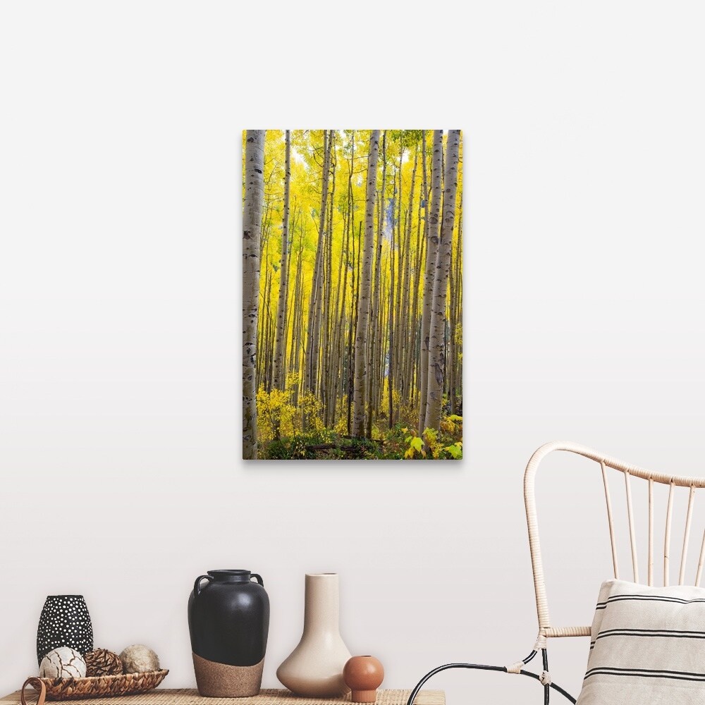 "Aspen trees in a forest, Maroon Bells, Maroon Creek Valley, Aspen, Colorado" Canvas Wall Art