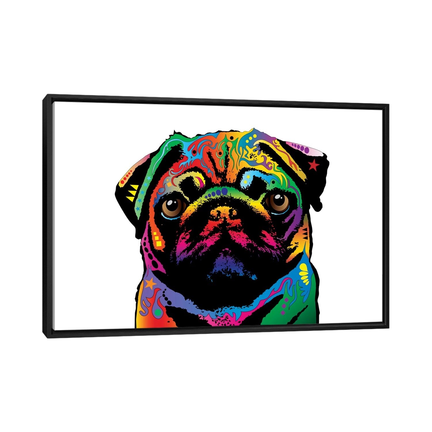 iCanvas "Rainbow Pug on White" by Michael Tompsett Framed Canvas Print