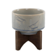 Mid-Century 4" Constellation Ceramic Pot on Wood Stand,Ivory
