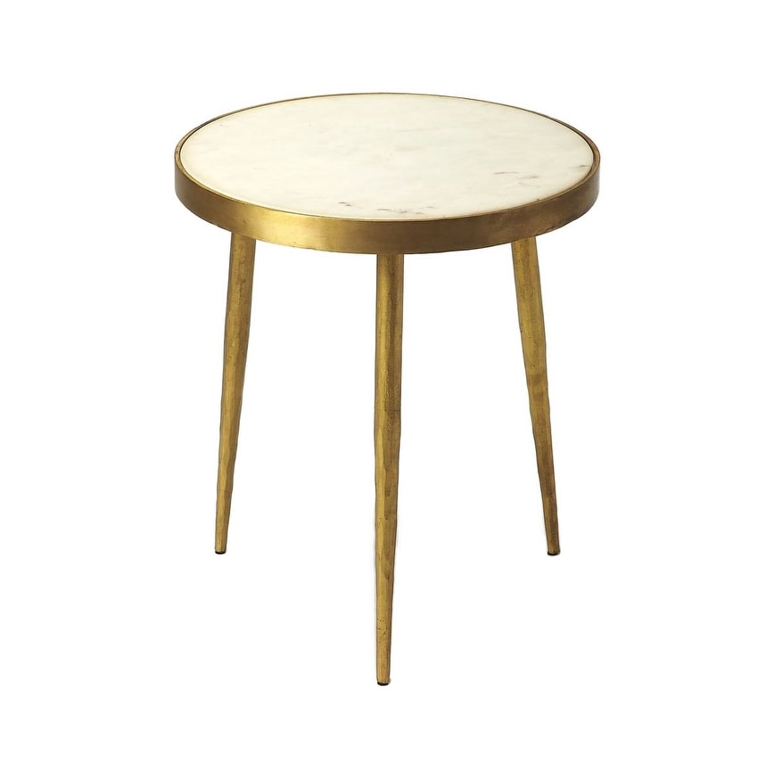SEI Furniture Garzeaux Mid Century Modern Ivory Marble Gold Side Table