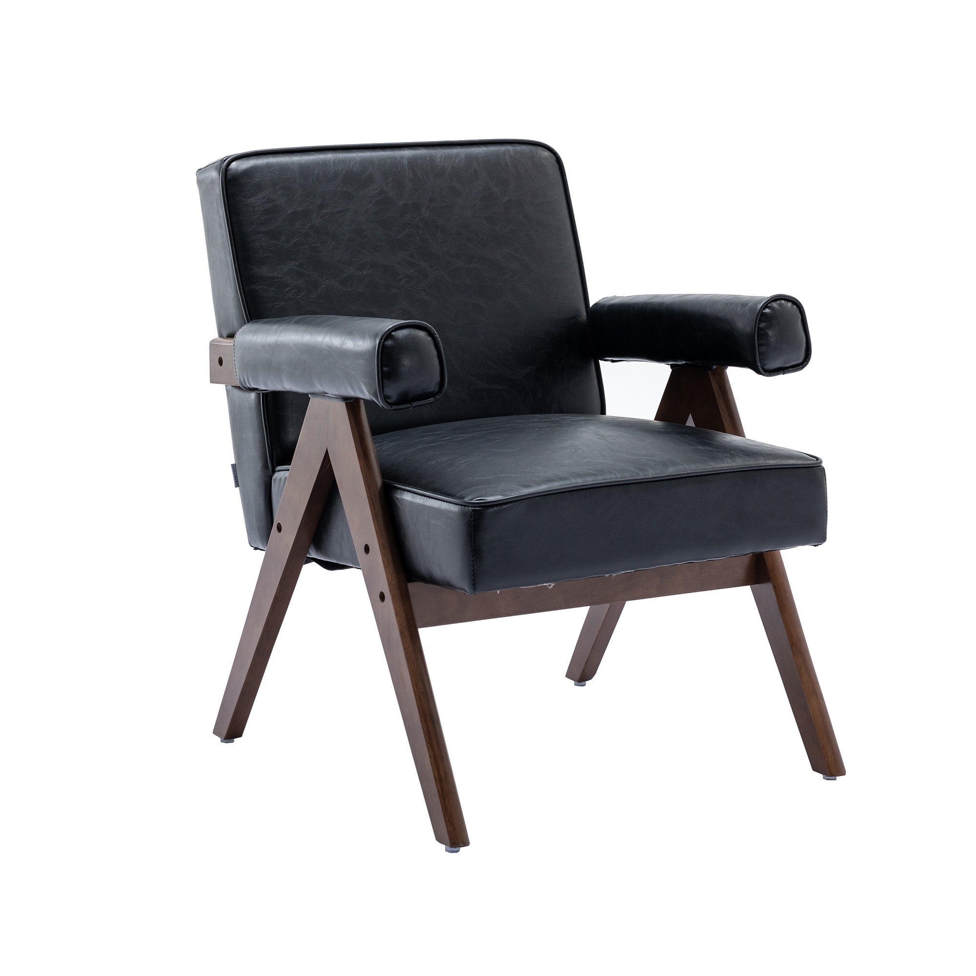 Leisure Chair with Solid Wood Armrest and Feet, Mid Century Modern Accent chair, for Living Room Bedroom Studio chair