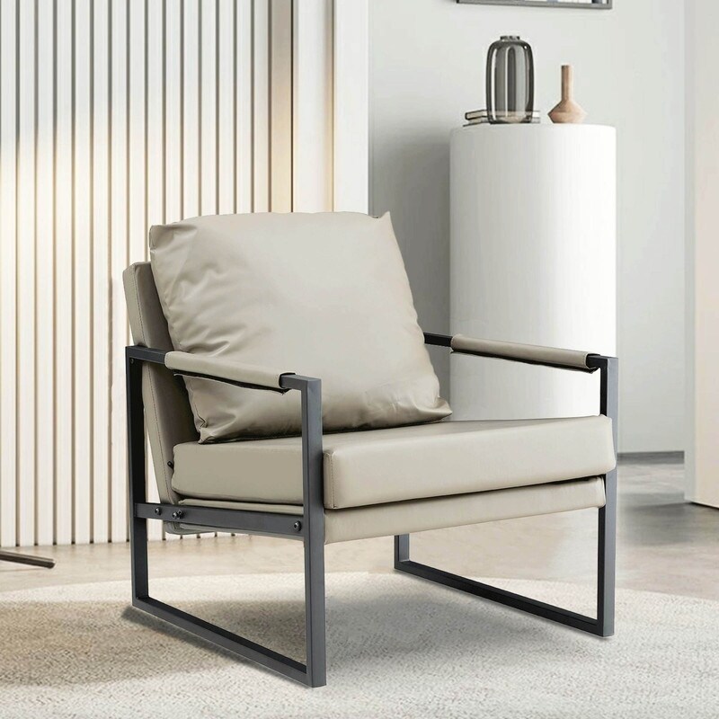 PU Leather Accent Arm Chair Mid Century Modern Upholstered Sofa Chairs with Metal Frame