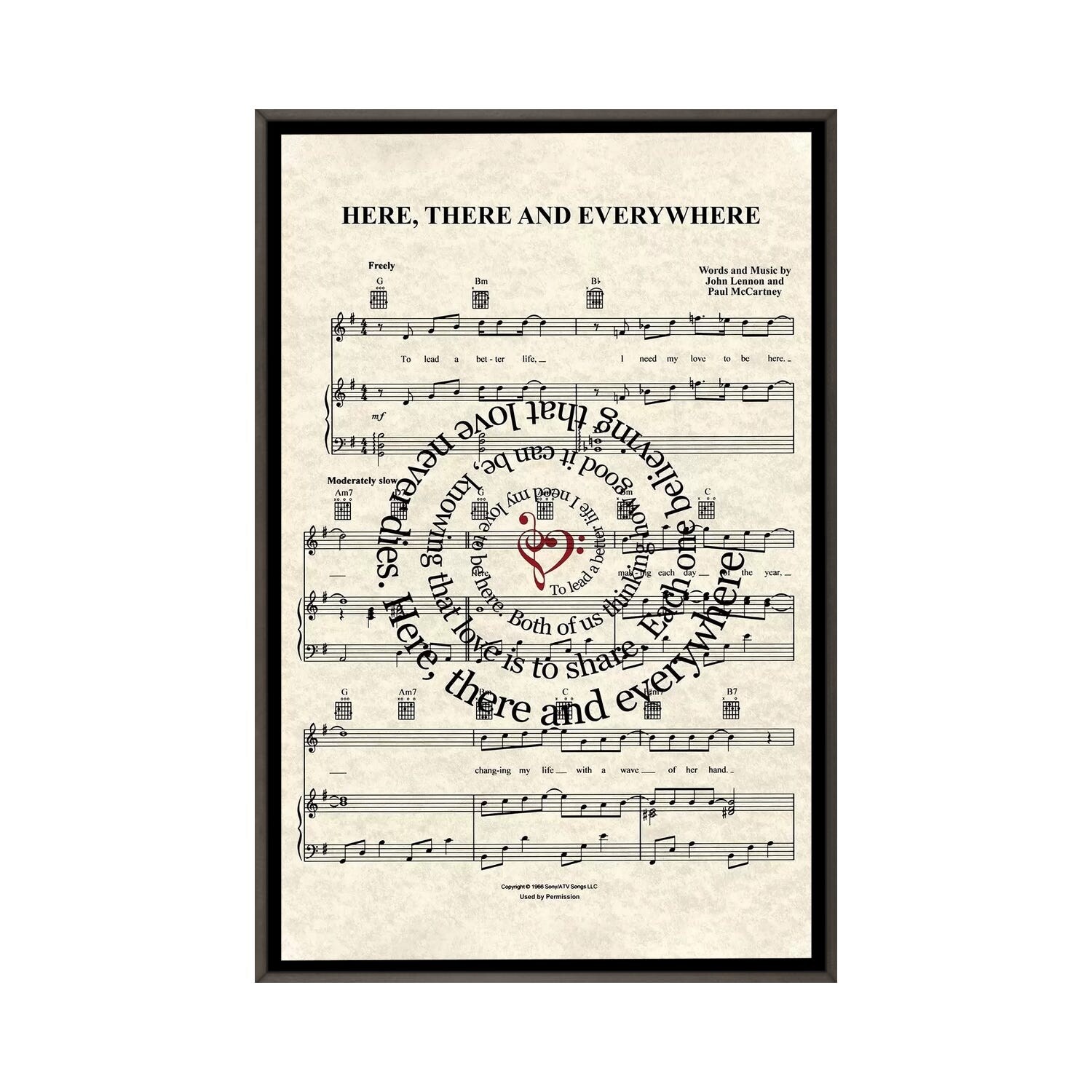 iCanvas "Here, There And Everywhere" by WordsAndMusicArt Framed