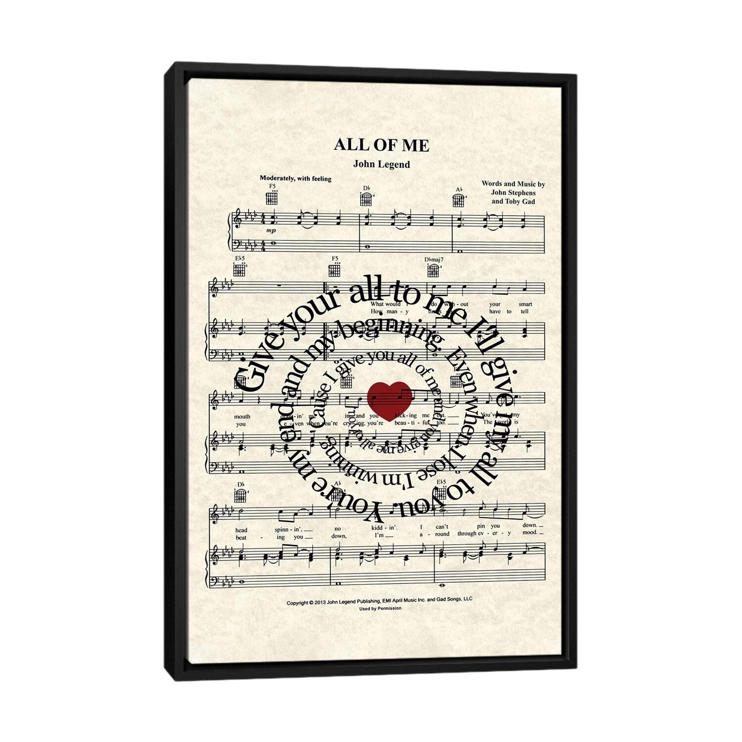 iCanvas "All Of Me" by WordsAndMusicArt Framed