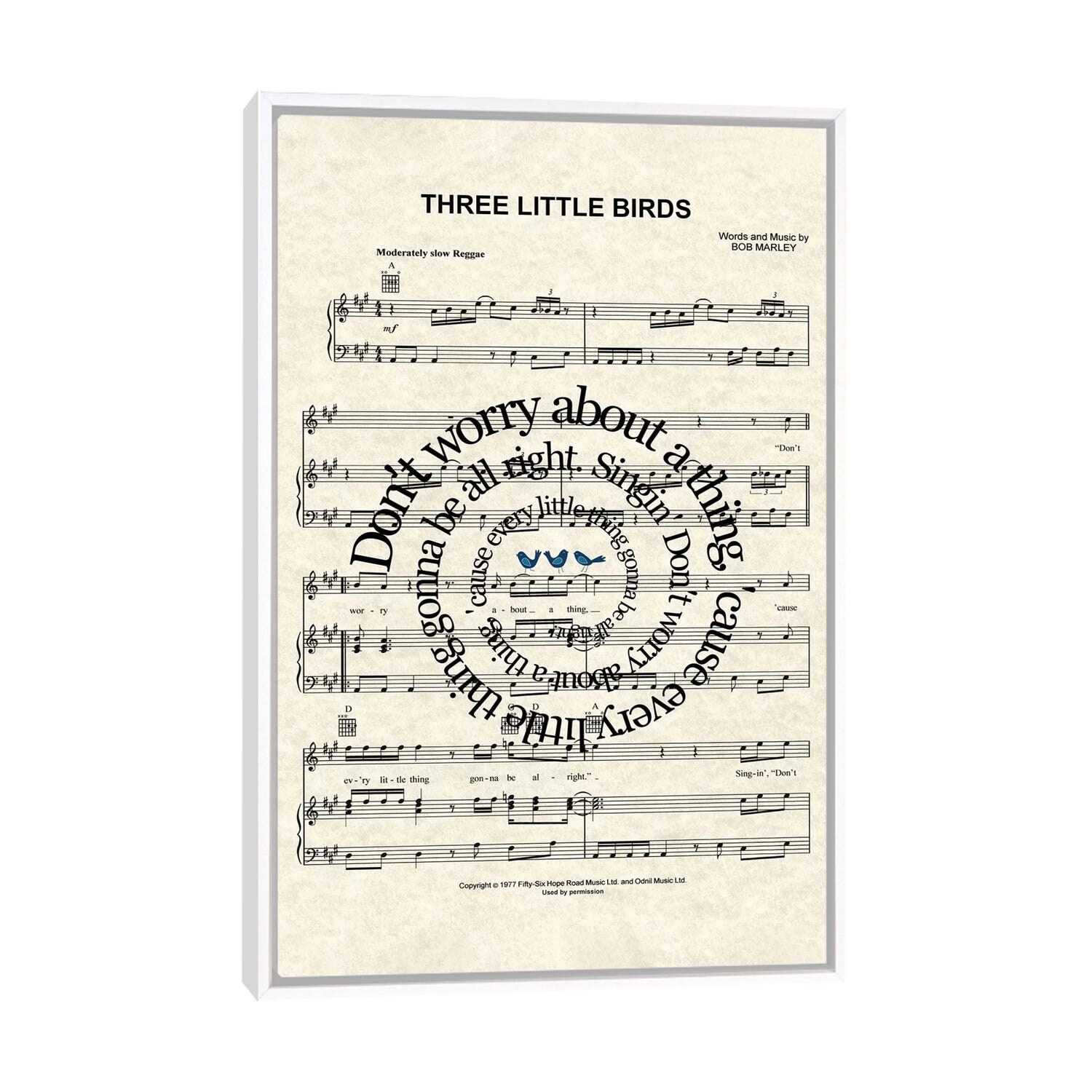 iCanvas "Three Little Birds" by WordsAndMusicArt Framed Canvas Print
