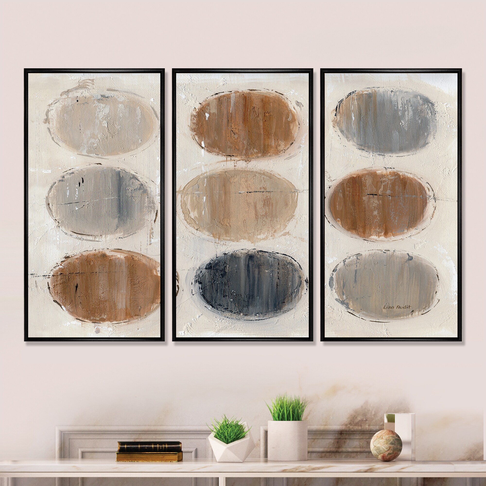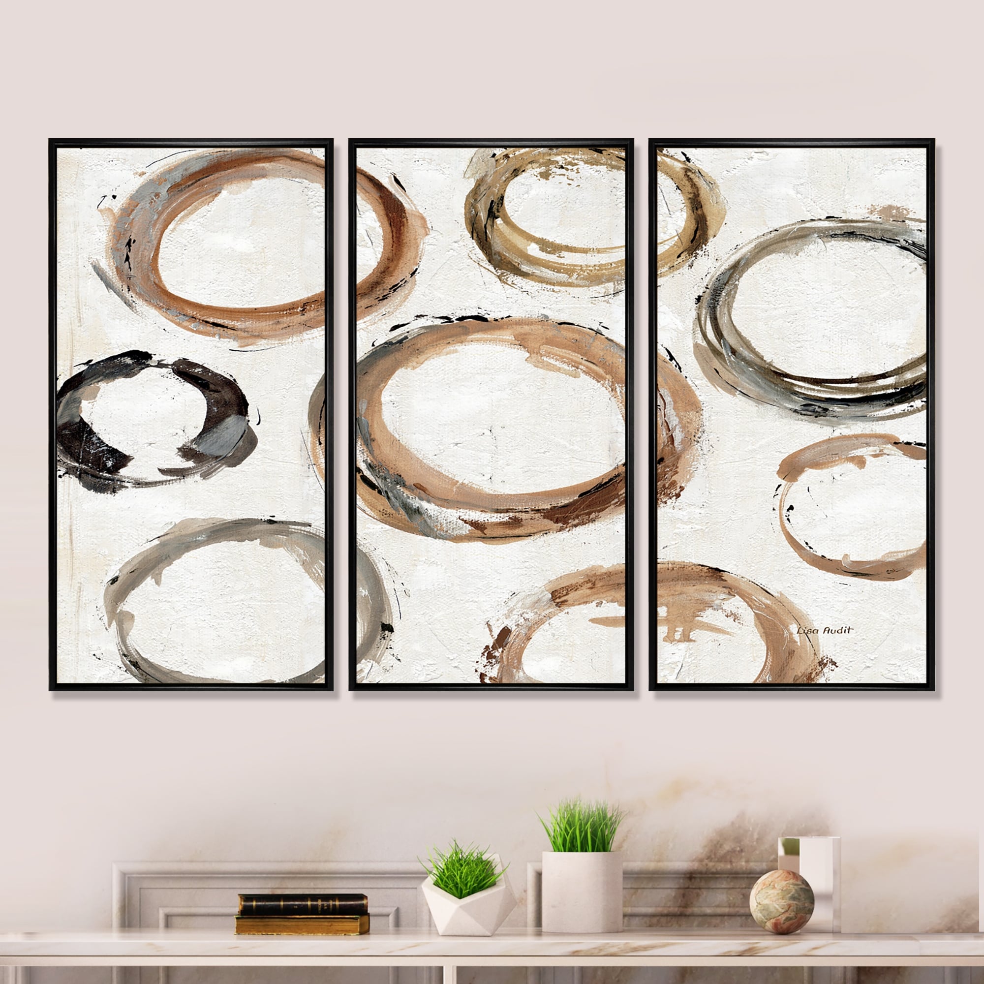 Designart "Geometric Circle Natural Balance II" Mid-Century Modern Framed Canvas Wall Art Print Set of 3 - 4 Colors of Frames