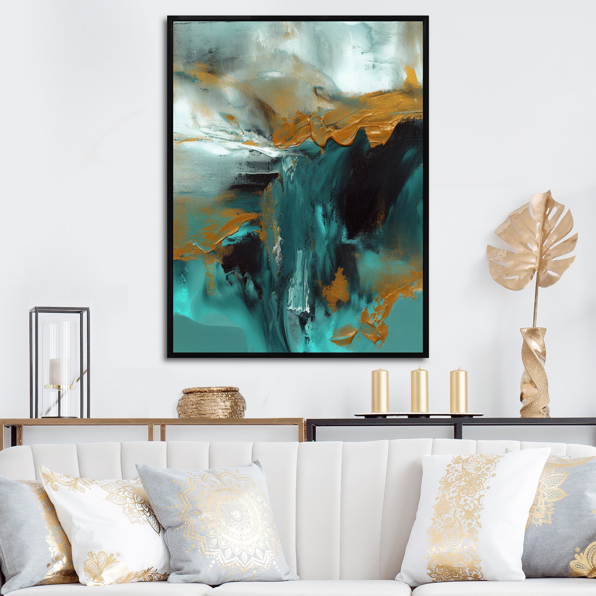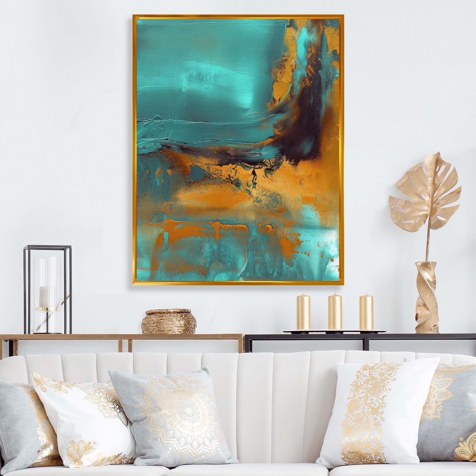 Designart "Teal Balance I" Abstract Framed Canvas Wall Art Print
