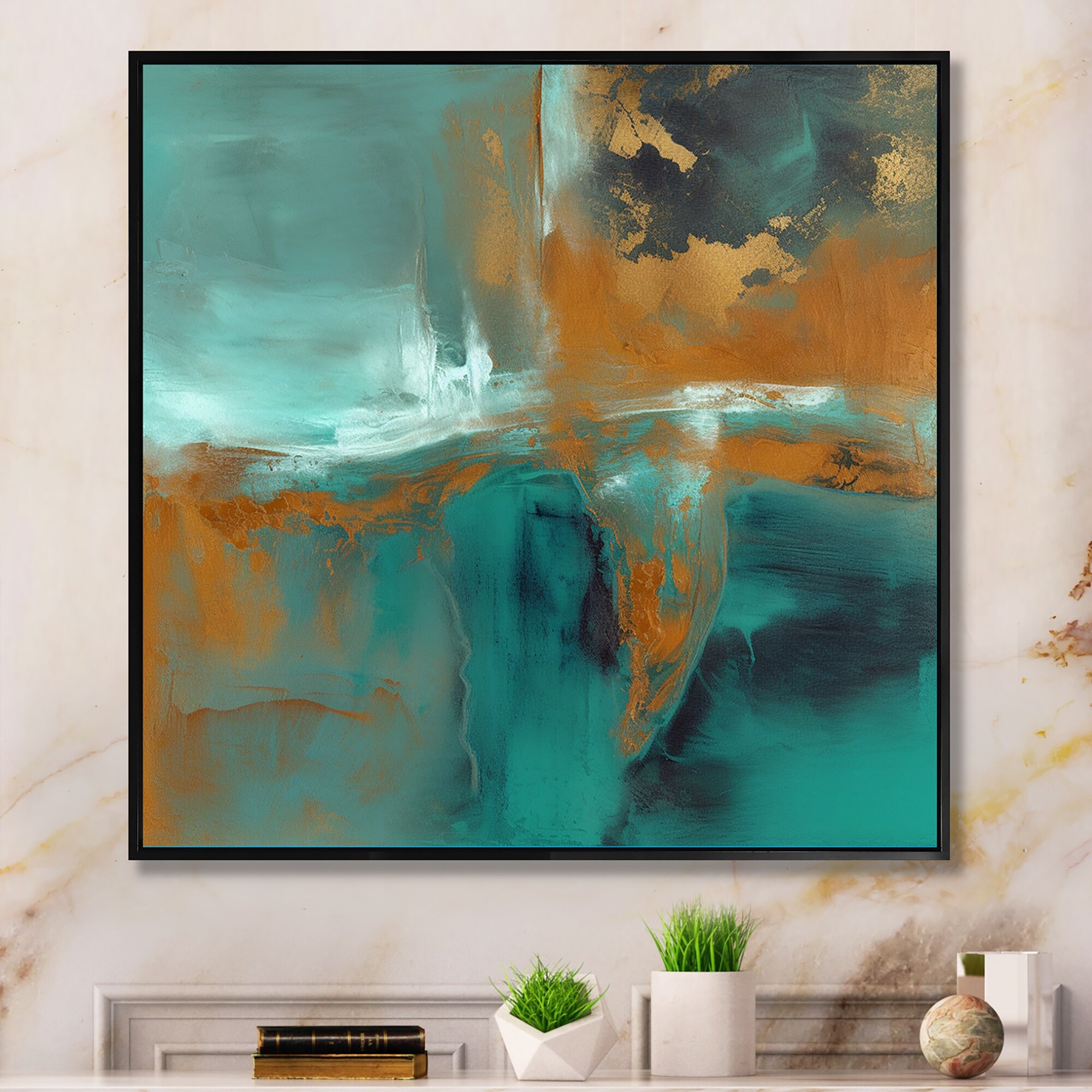 Designart "Teal Balance II" Abstract Painting Framed Canvas Art Print