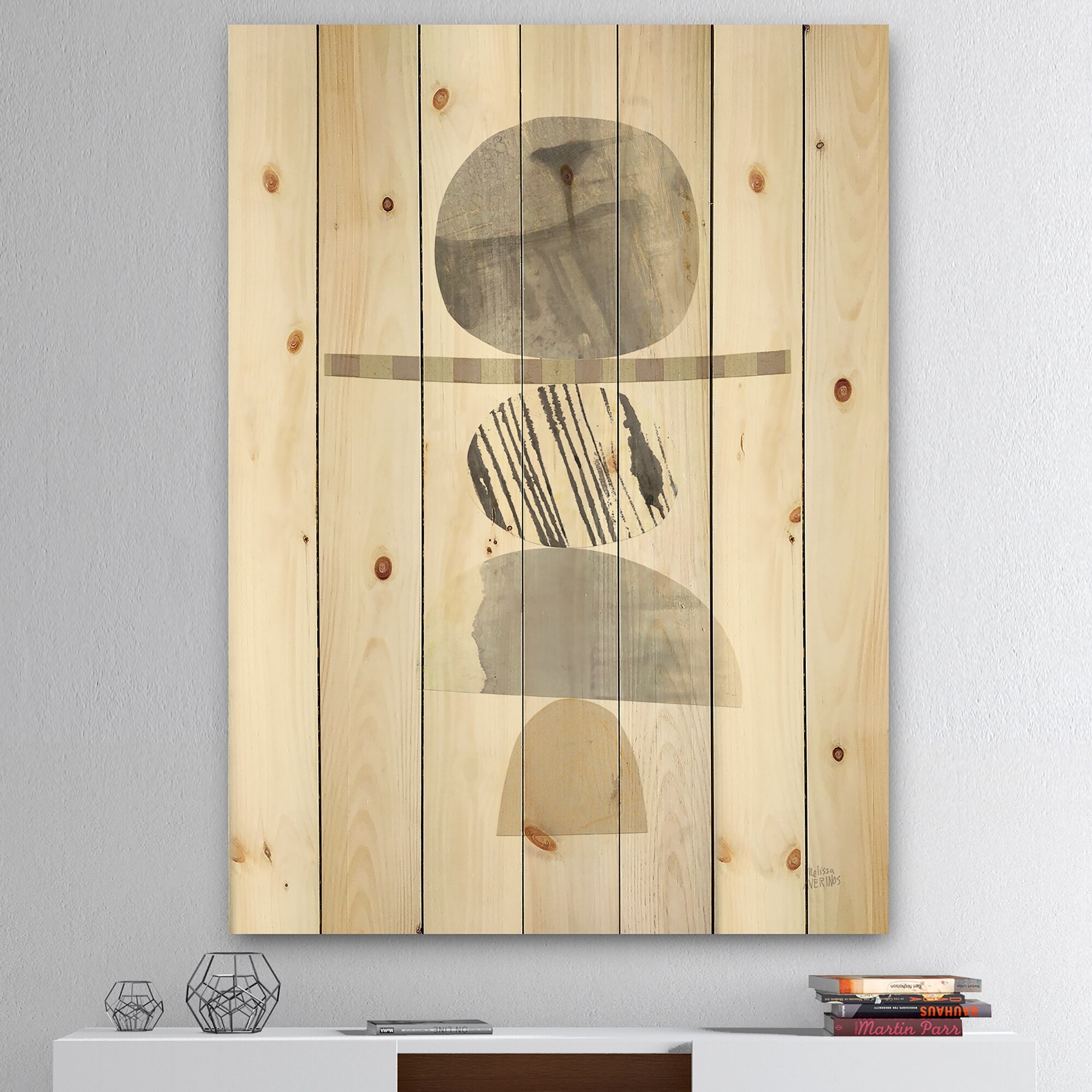 Designart 'Geometric Balance Neutral I' Shabby Chic Print on Natural Pine Wood - Grey