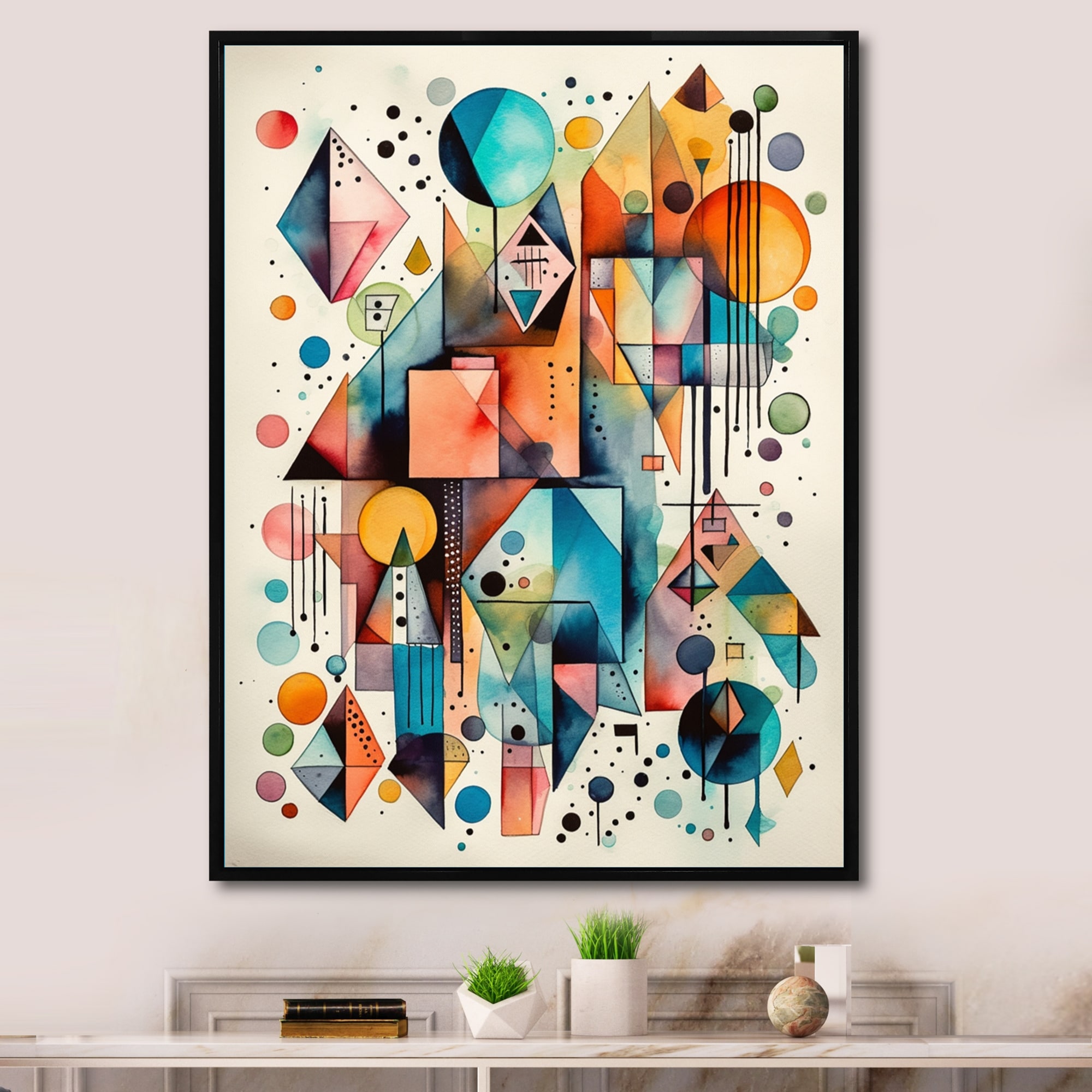 Designart "Blue And Orange Geometry Balance I" Modern Geometric Framed Canvas Art Print