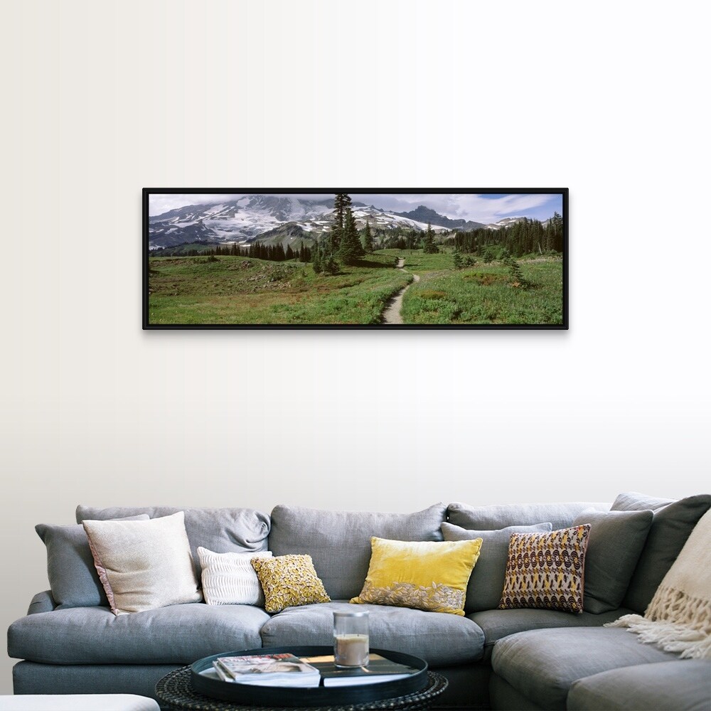 "Washington, Mt. Rainier, Mt. Rainier National Park, Mazama Ridge, path" Black Float Frame Canvas Art