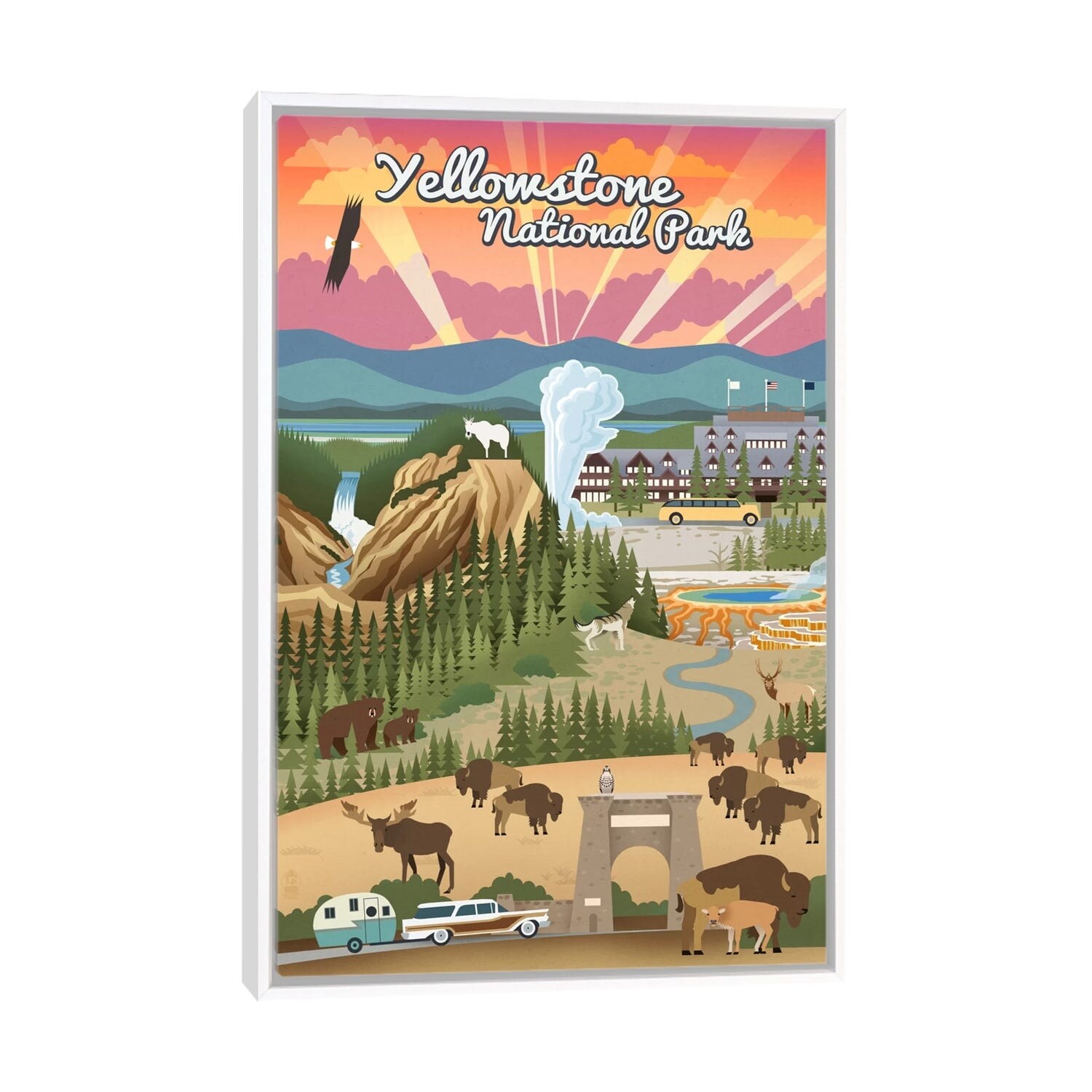 iCanvas "Yellowstone National Park (Retro Views)" by Lantern Press Framed Canvas Print