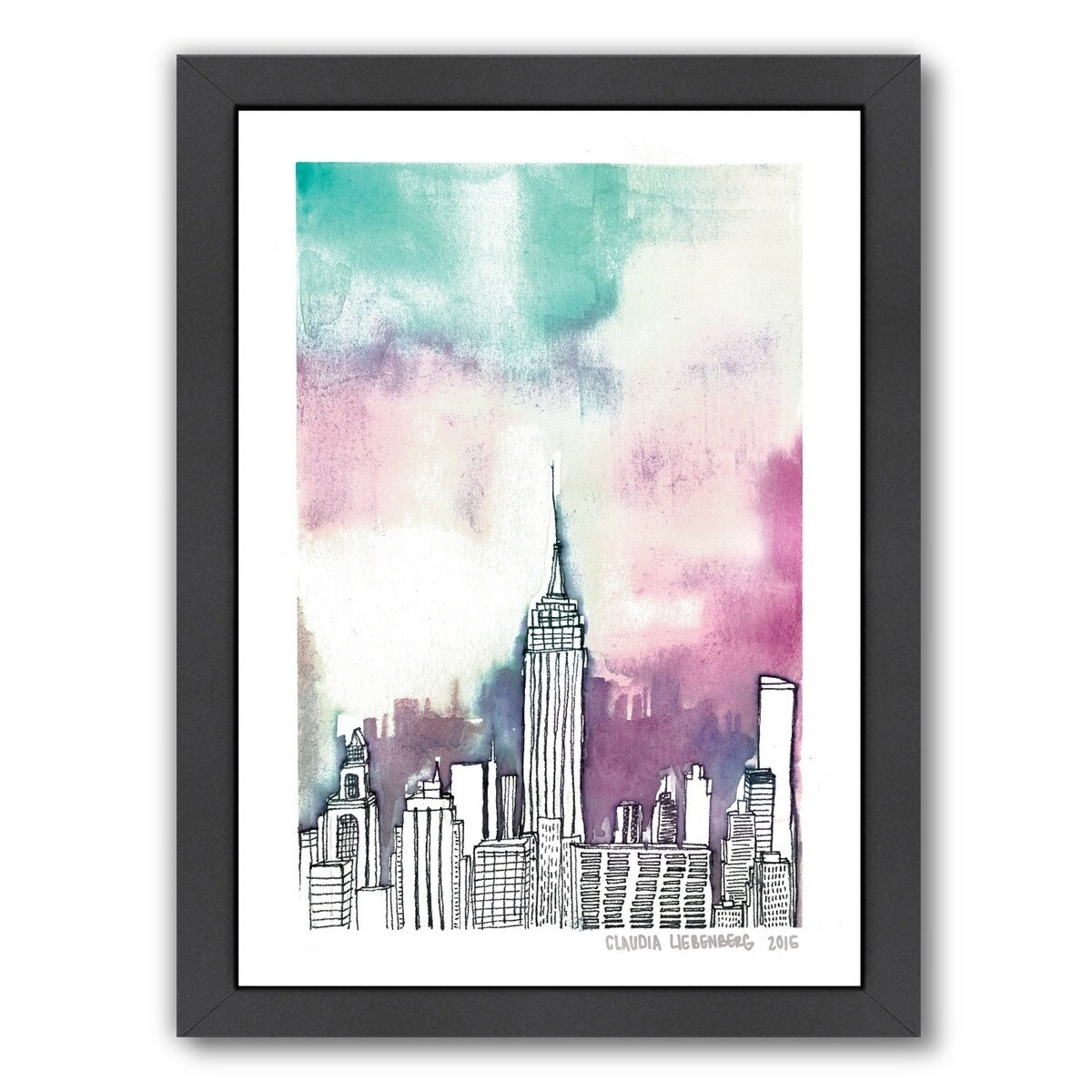 Designart "Futuristic New York City Neon I" Cityscapes Framed Art Print