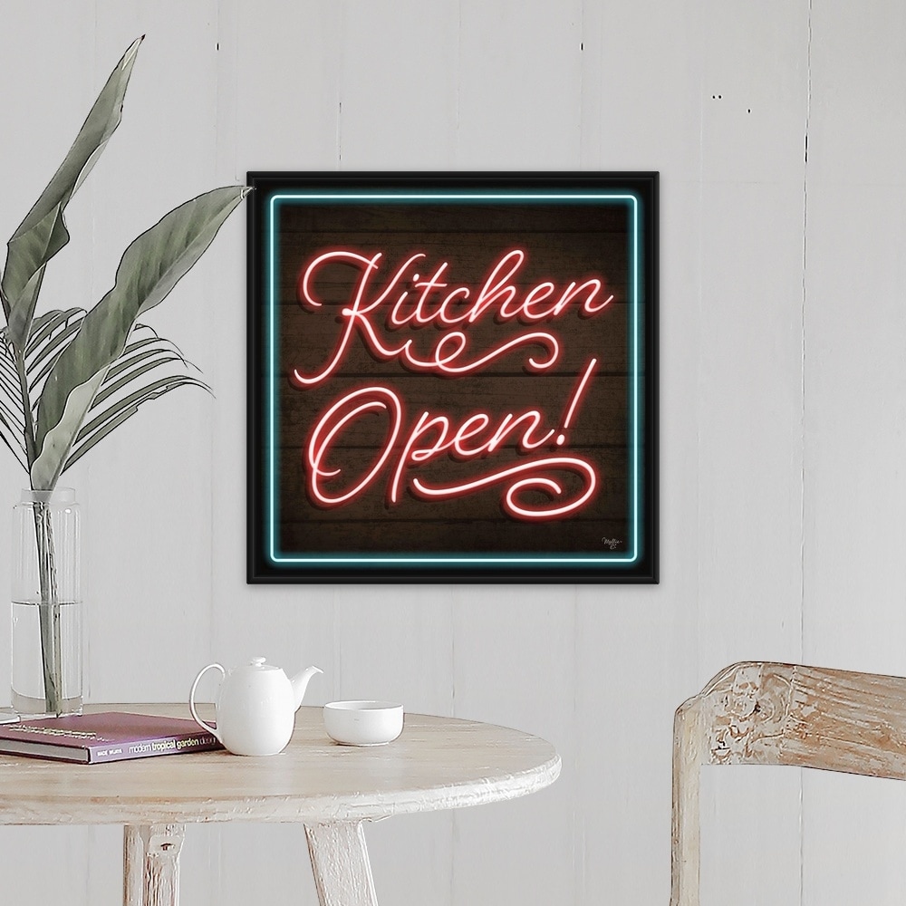 "Neon Kitchen Open" Black Float Frame Canvas Art