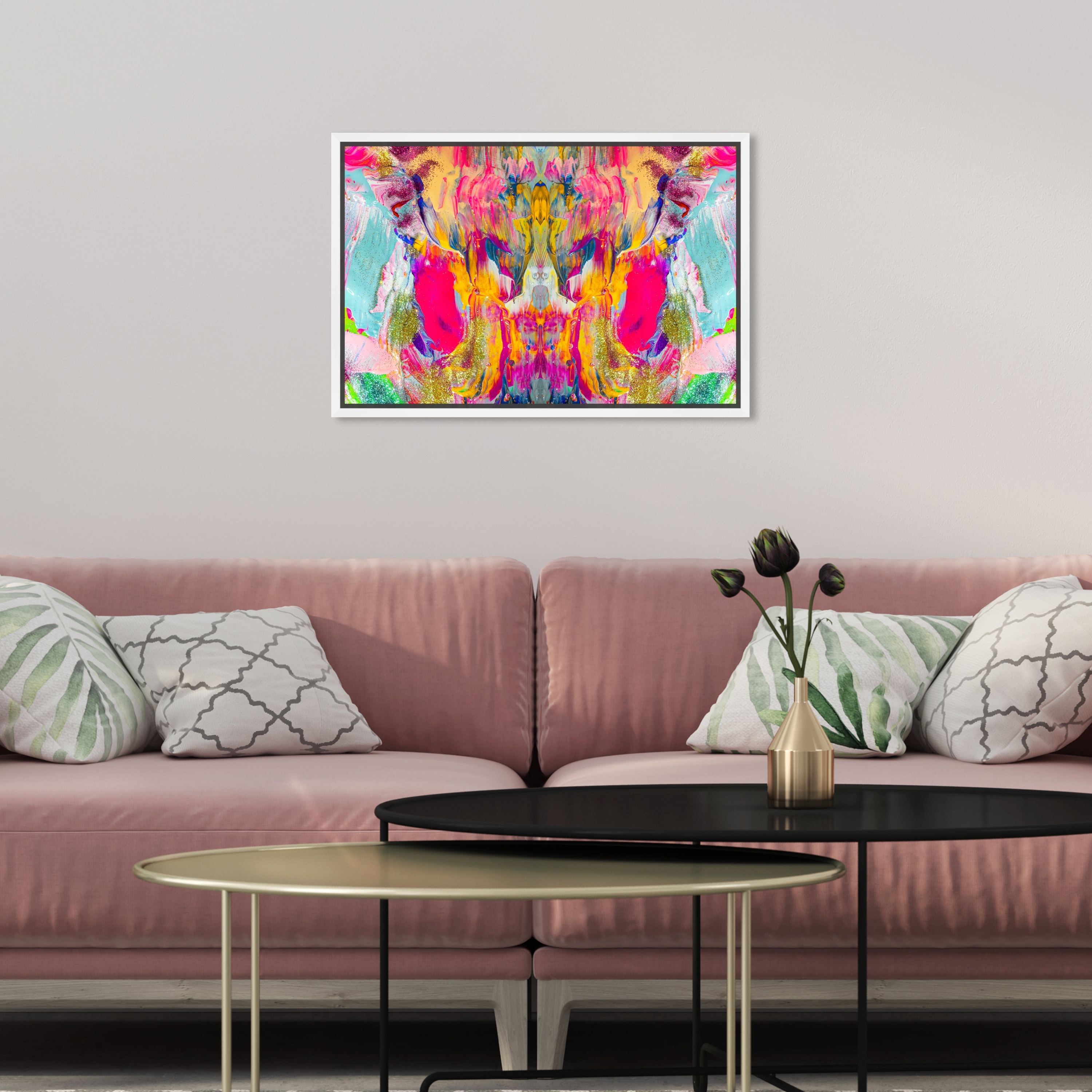 Oliver Gal 'Bright Neon Symmetry' Abstract Wall Art Framed Canvas Print Paint - Pink, Gold