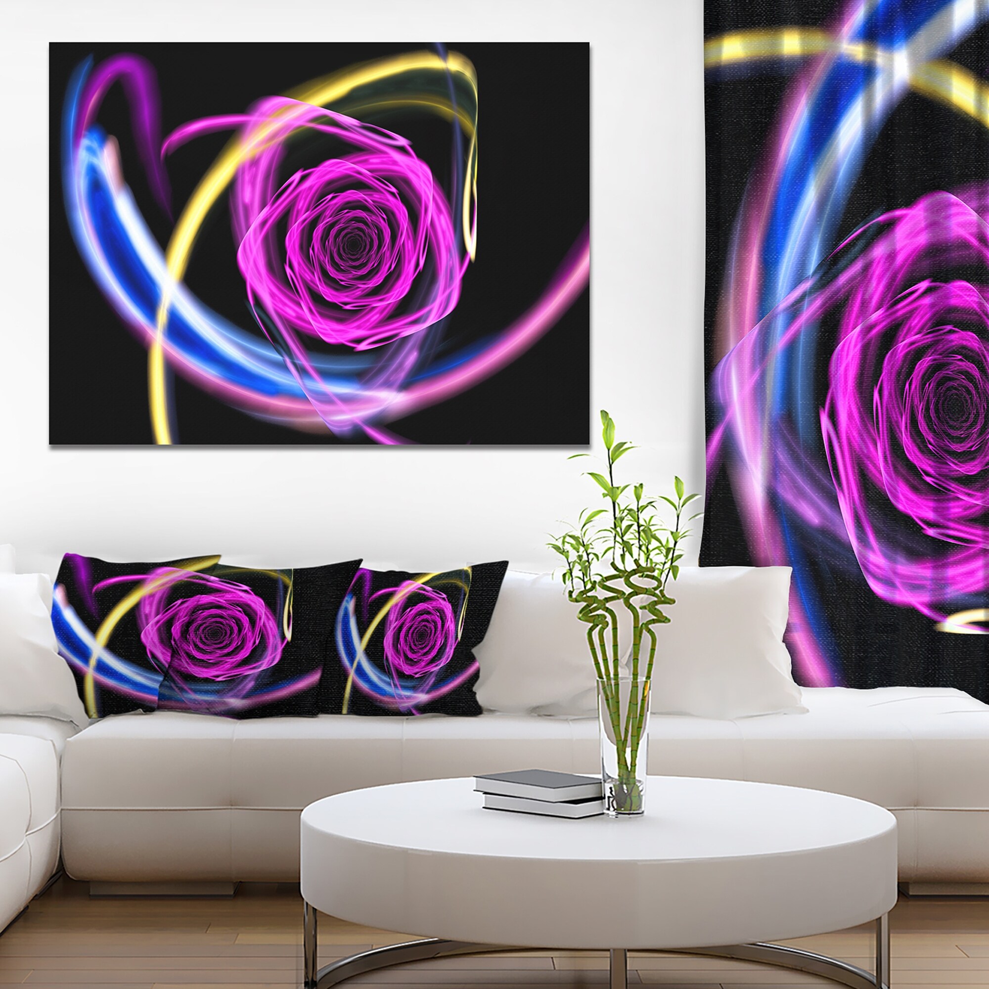 Designart "Glowing Purple Neon Rose" Floral Wall Art on Canvas