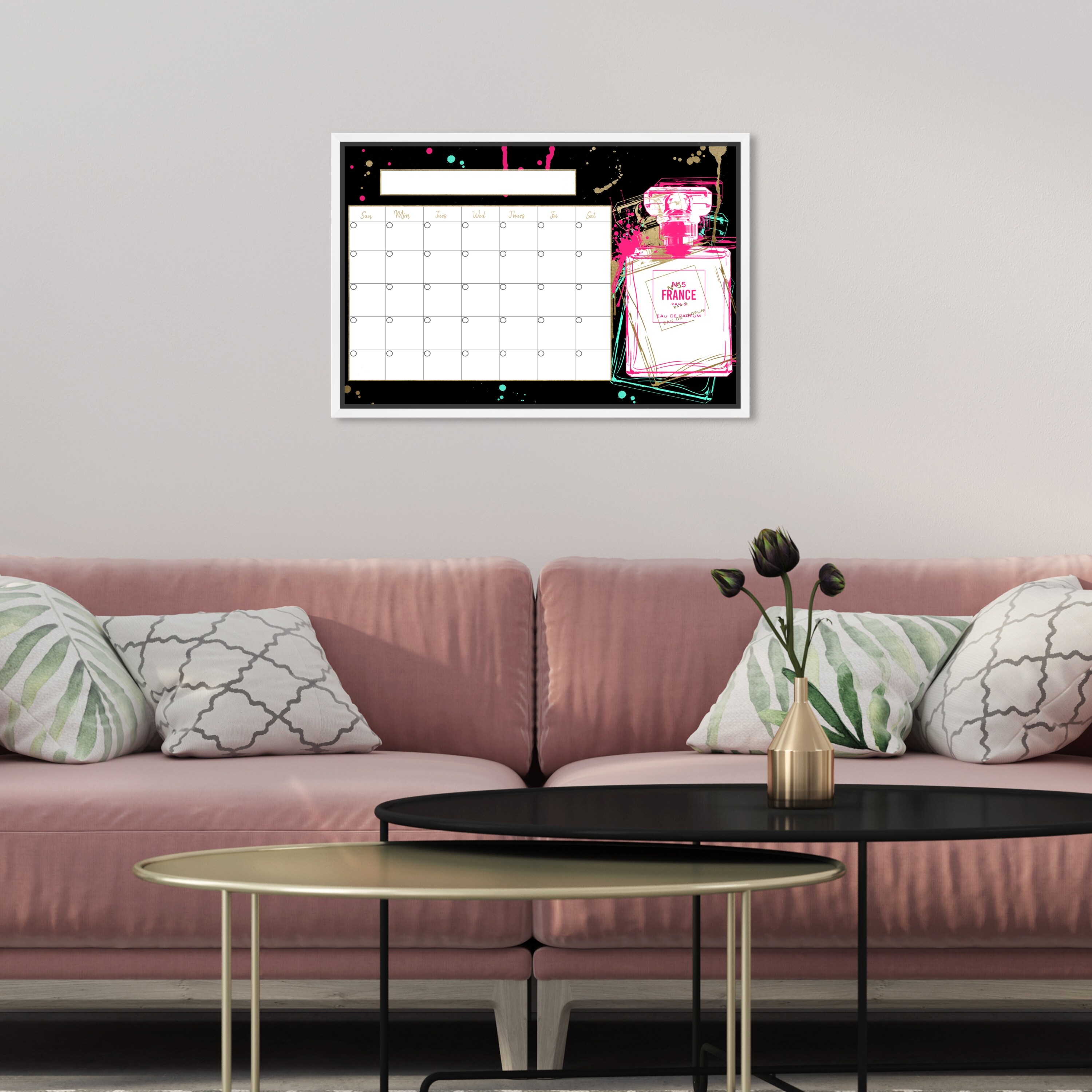 Oliver Gal 'Neon Perfume Calendar' Glam Black Wall Art Canvas Print