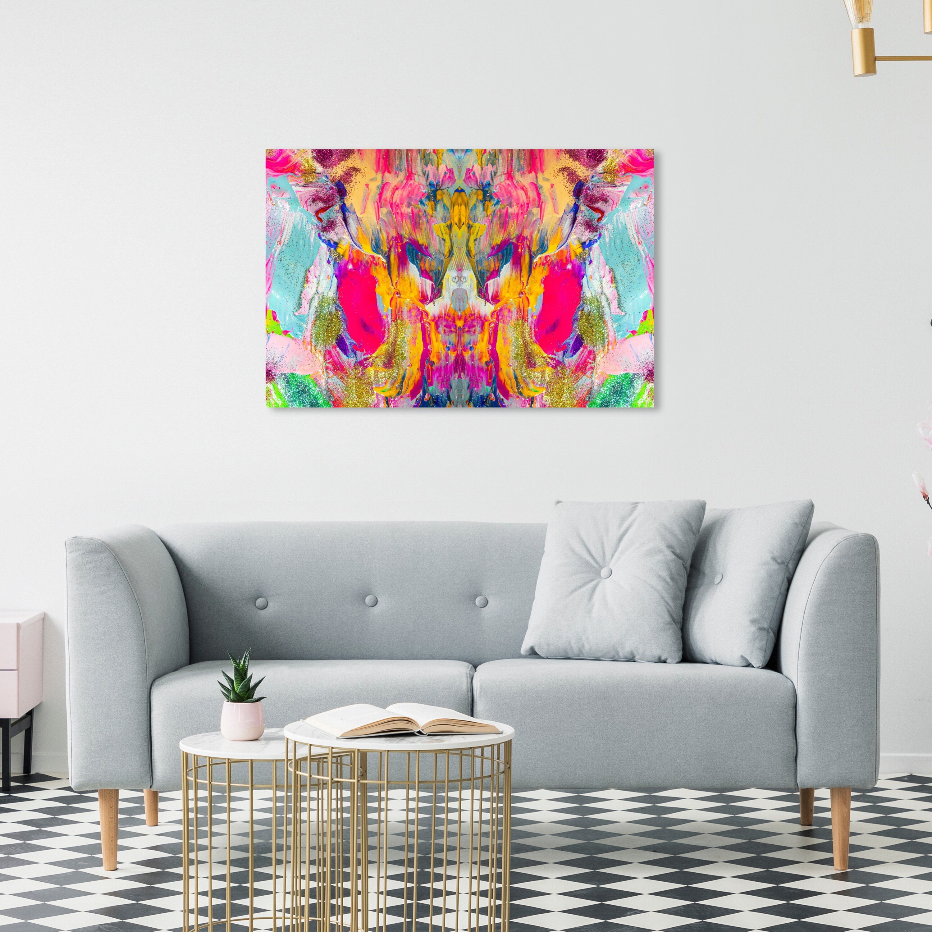 Oliver Gal 'Bright Neon Symmetry' Abstract Wall Art Canvas Print Paint - Pink, Gold