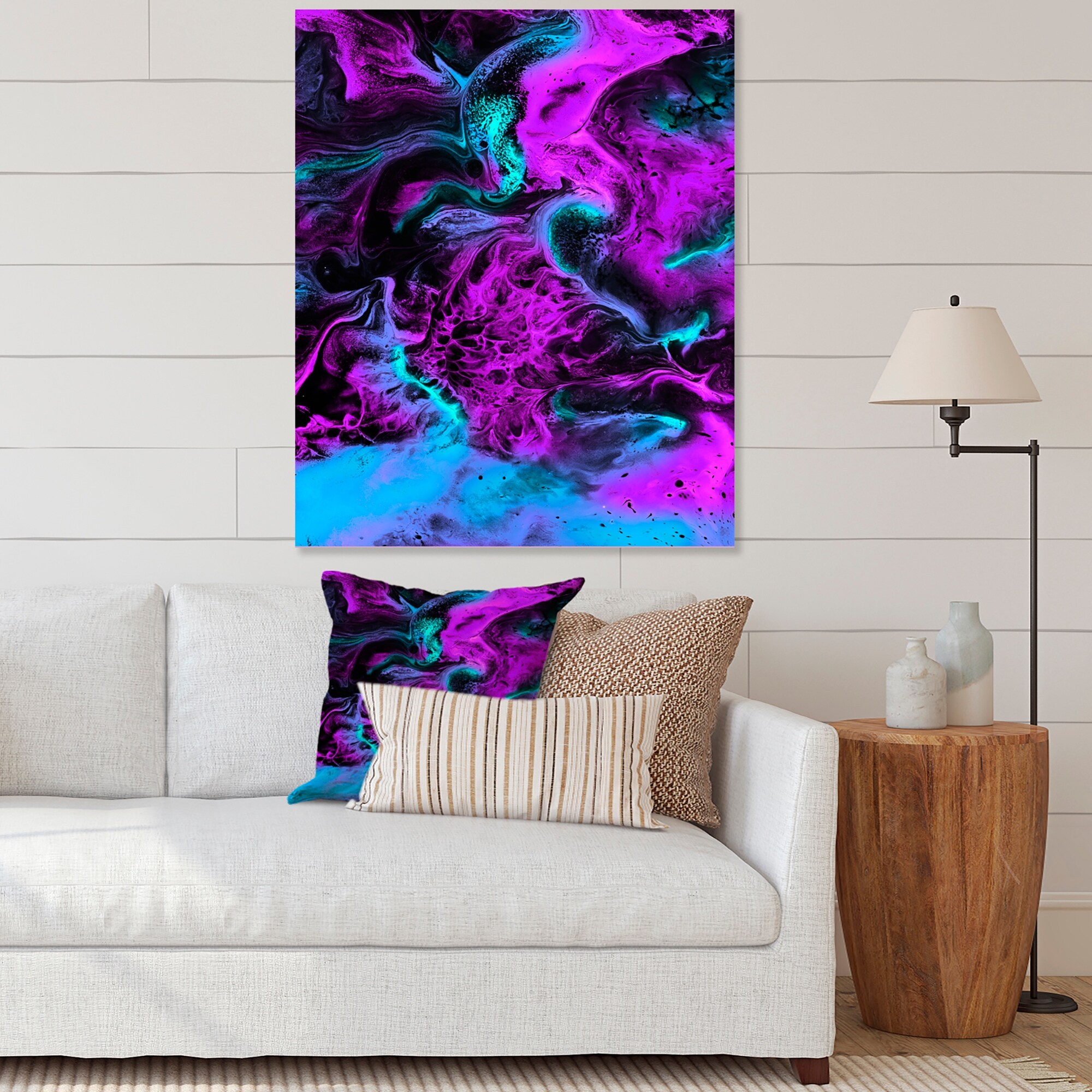 Designart "Neon Liquid Art in Purple And Blue" Modern Canvas Wall Art Print