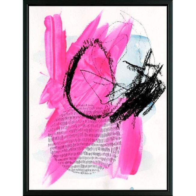 Designart "Pink Neon Marble on Black" Modern Framed Canvas Wall Art Print