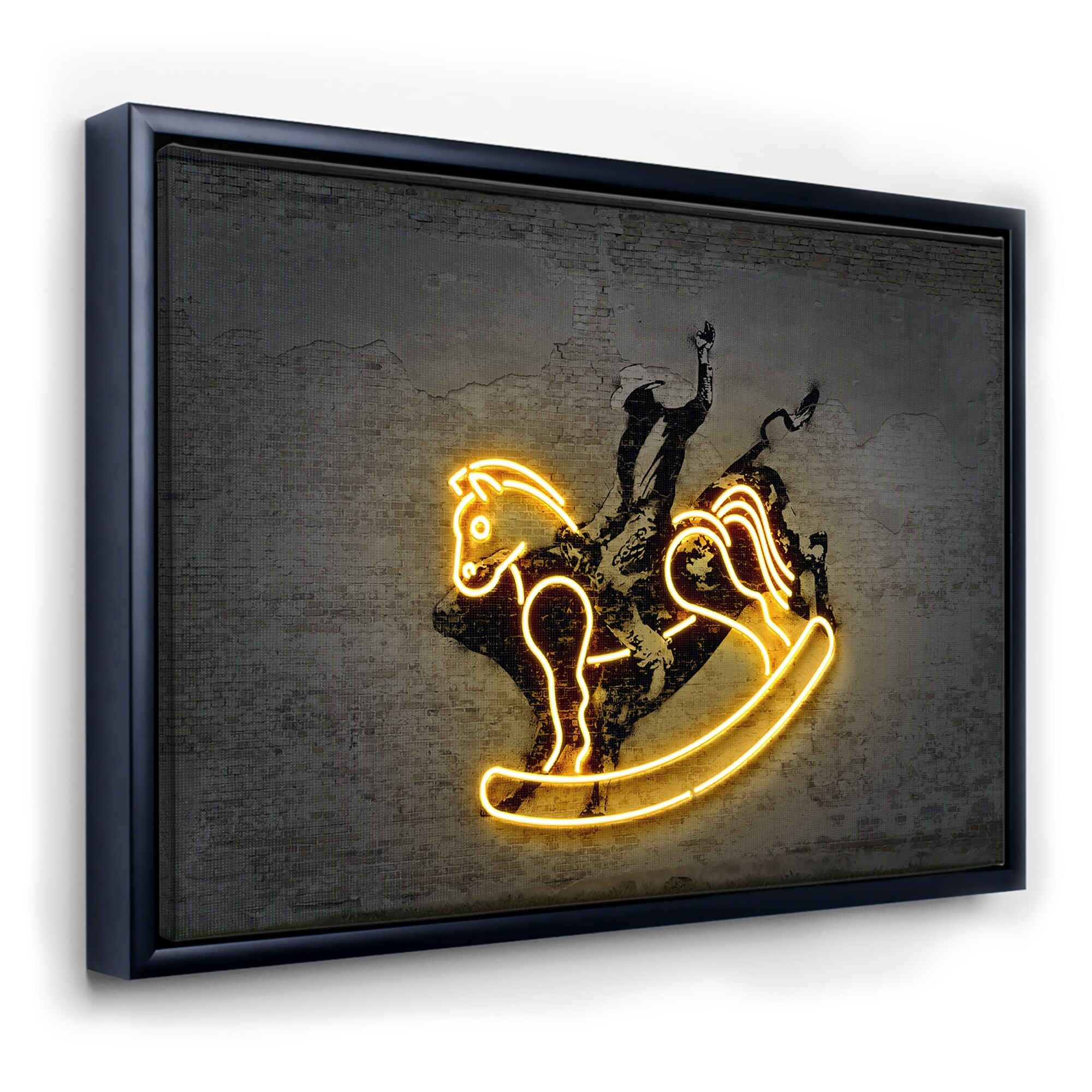 "Cowboy and Horse Neon Sign " Black Float Frame Canvas Art