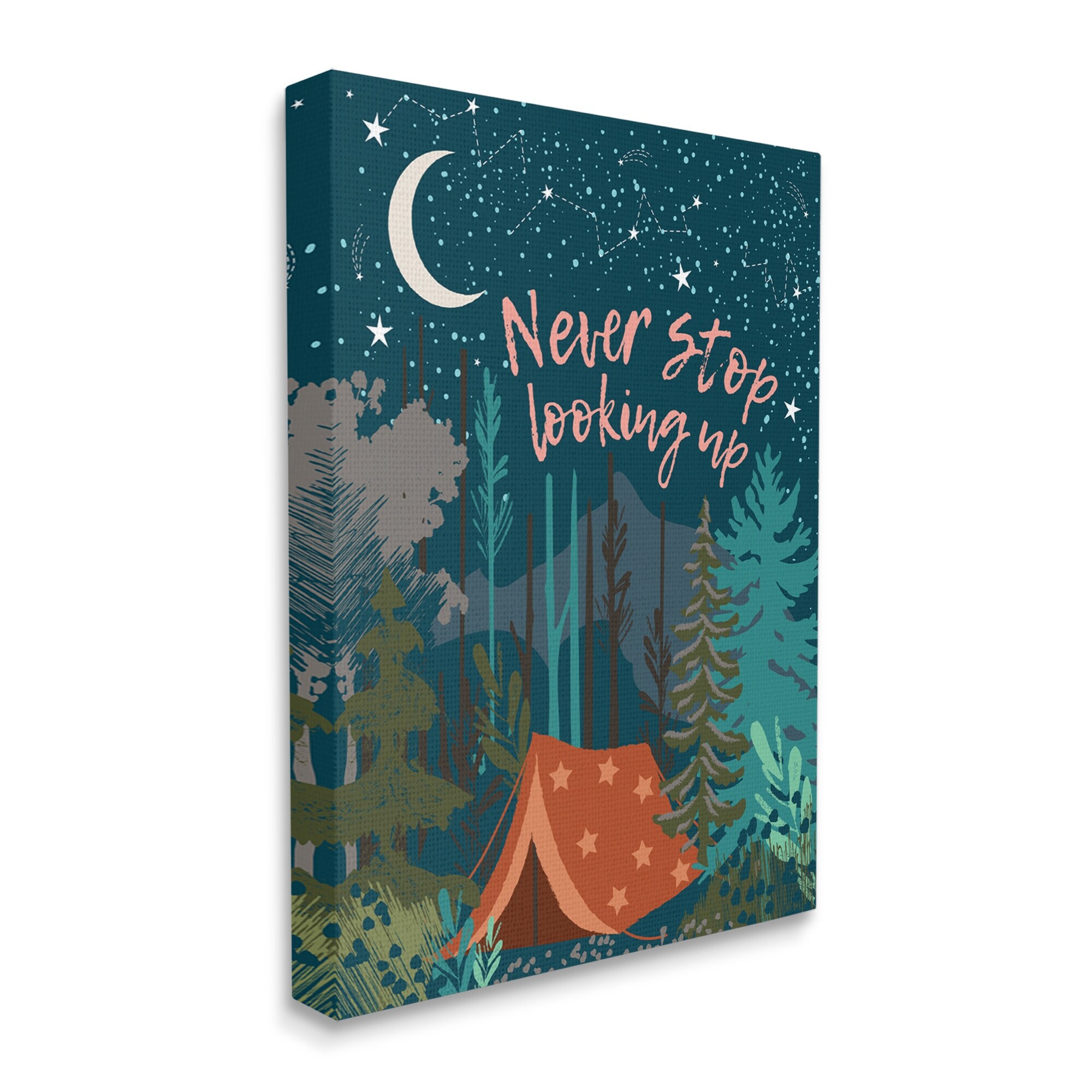 Stupell Industries Never Stop Looking Up Phrase Night Sky Camping Canvas Wall Art - Blue
