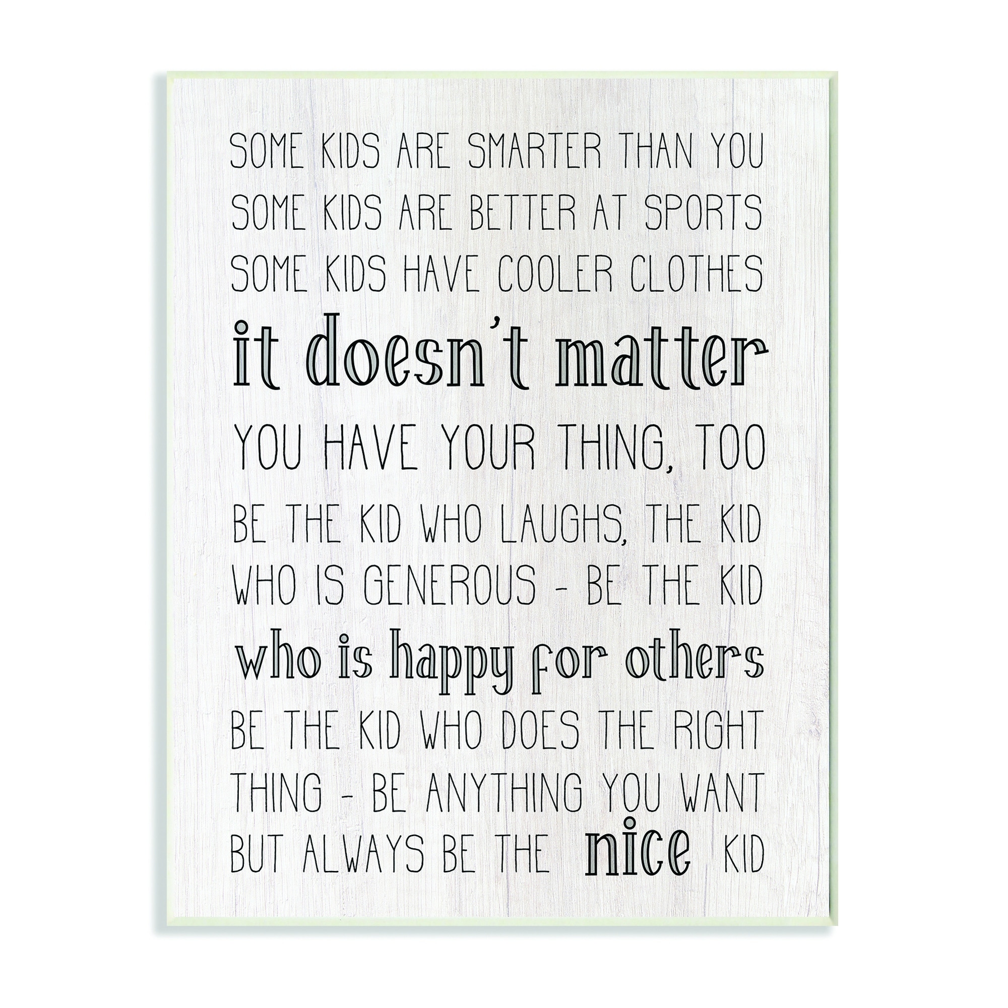 Stupell Be the Nice Kid Inspirational Family Wood Textured Word Design Wood Wall Art
