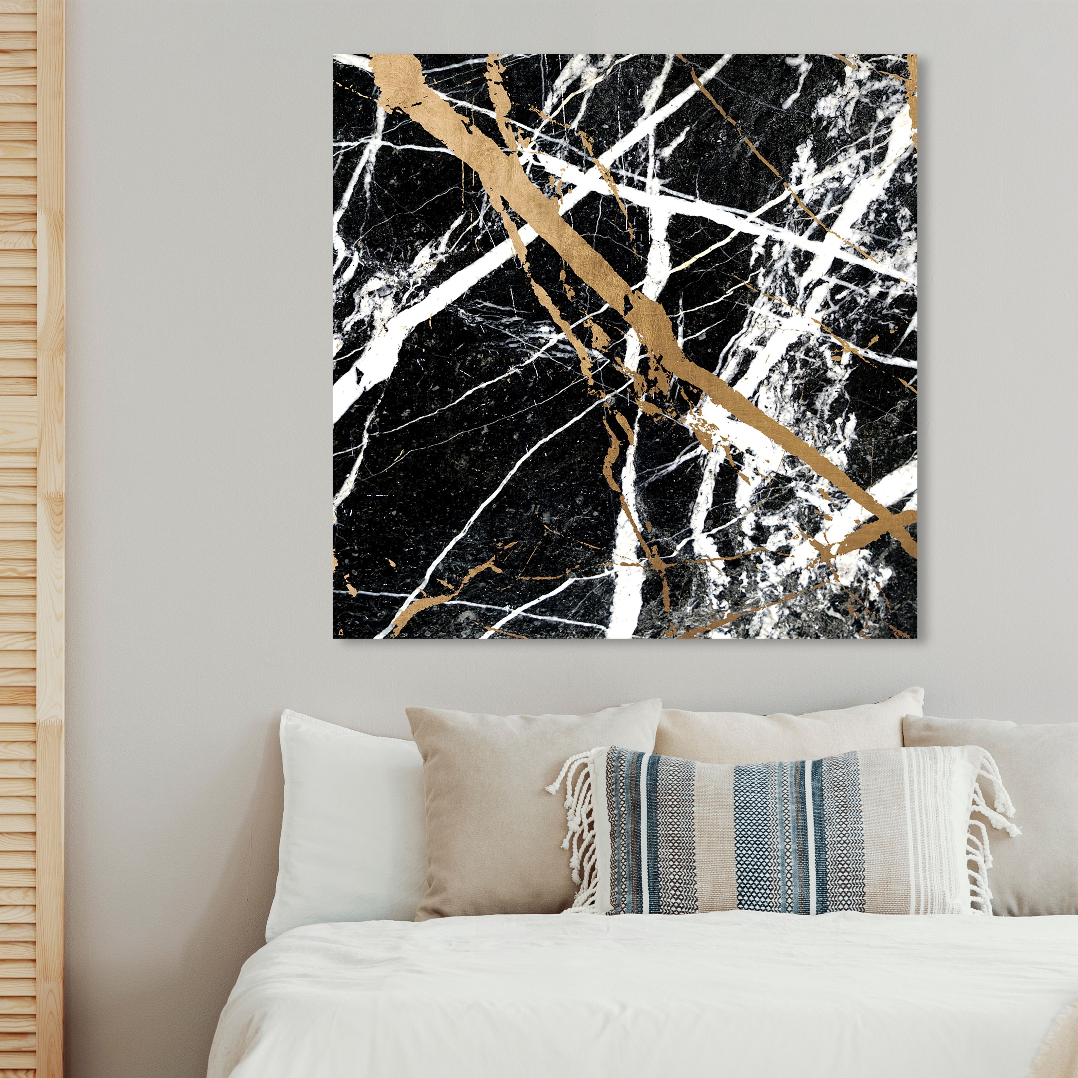Oliver Gal Abstract Wall Art Canvas Prints 'Calcatta Movement Noir II' Patterns - Gold, Black