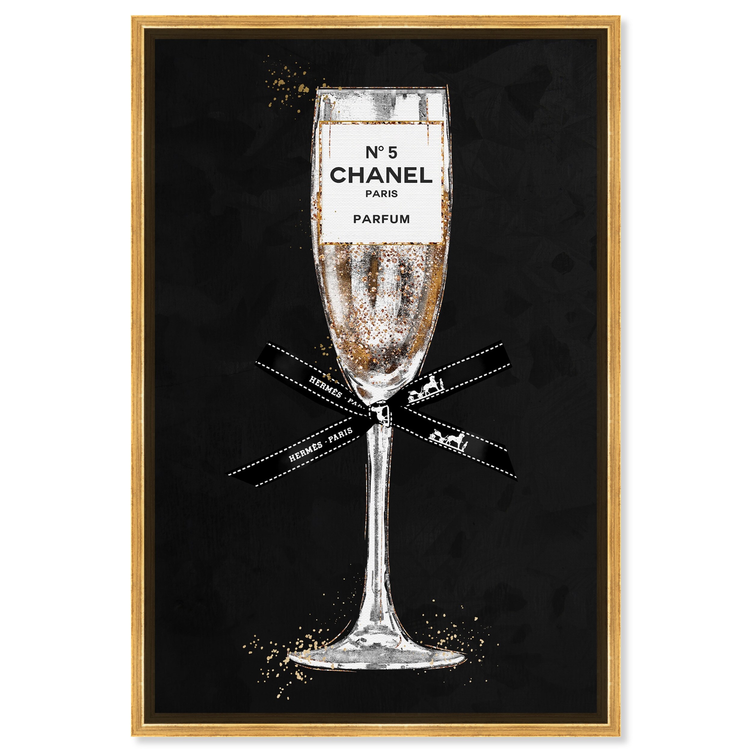 Oliver Gal 'Glam Bubbly Champagne Perfume Ribbon Noir' Wall Art Canvas
