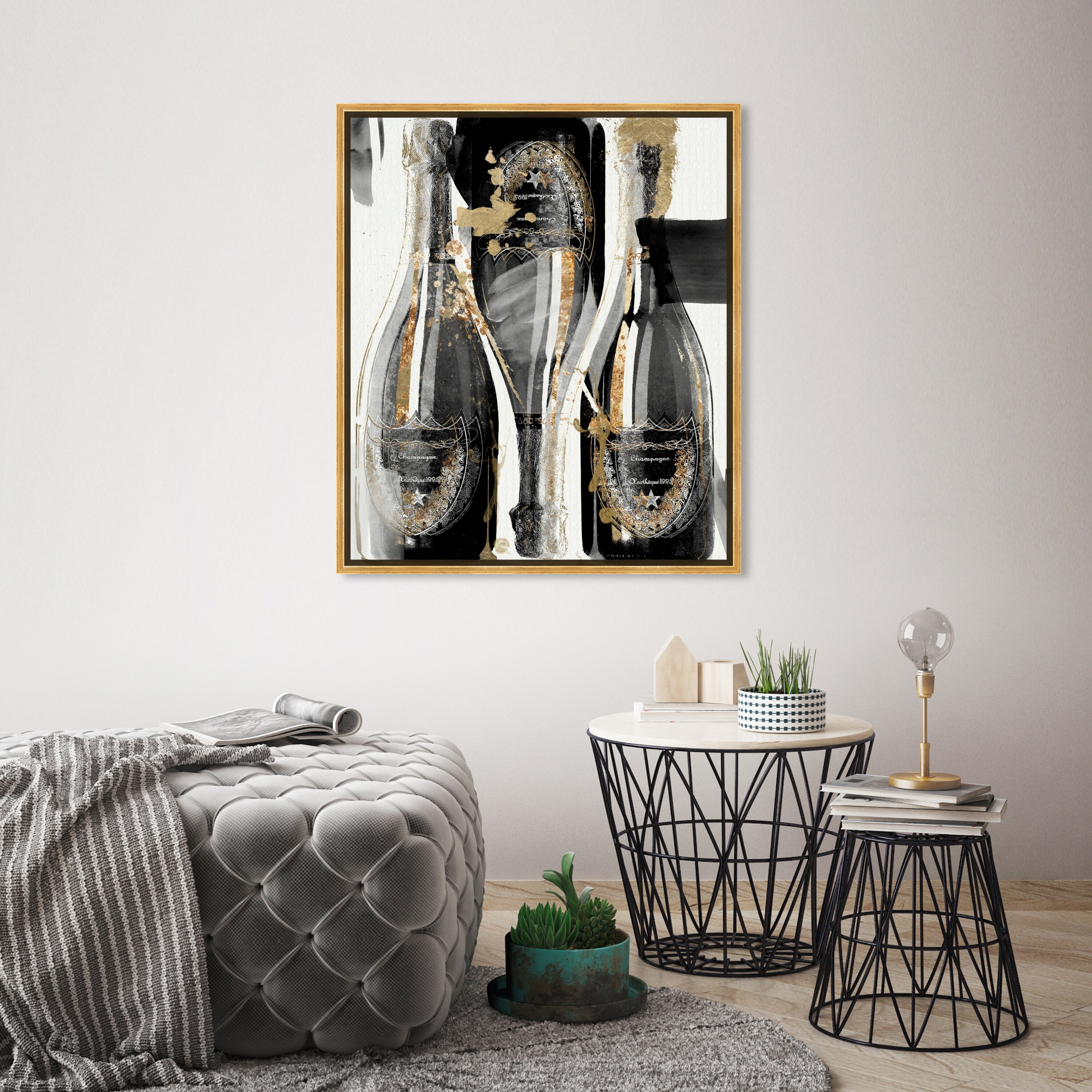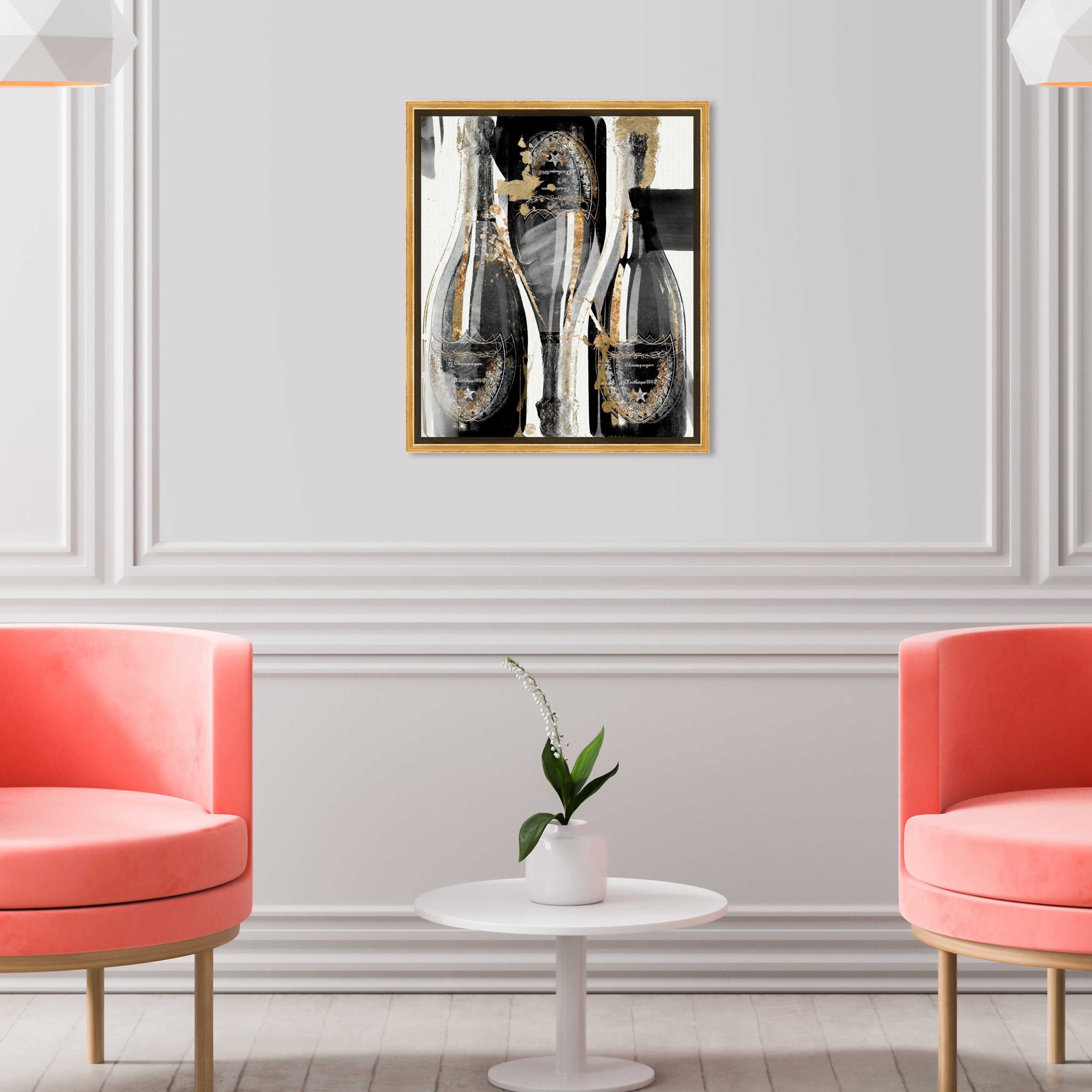 Oliver Gal 'Gold Showers Noir' Drinks and Spirits Wall Art Framed Canvas Print Champagne - Gold, Gray