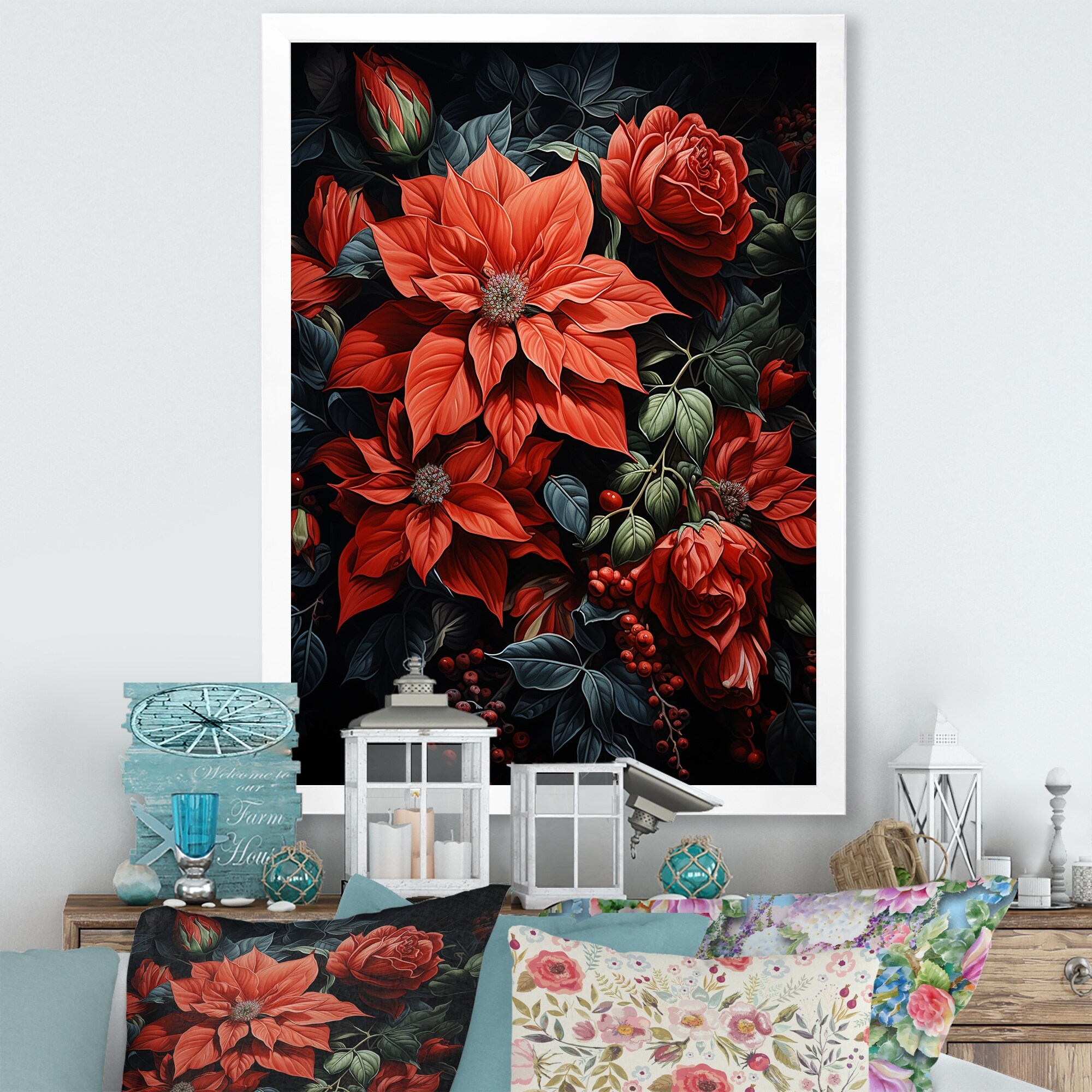 Designart "Poinsettia Flower Noir II" Poinsettias Framed Wall Art Prints