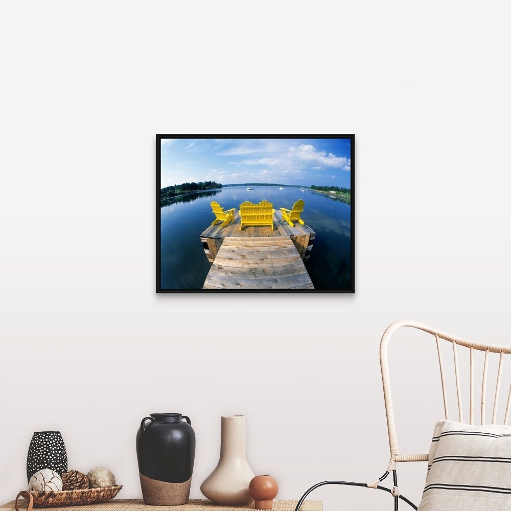 "Adirondack Chairs on Dock Nova Scotia Canada" Black Float Frame Canvas Art