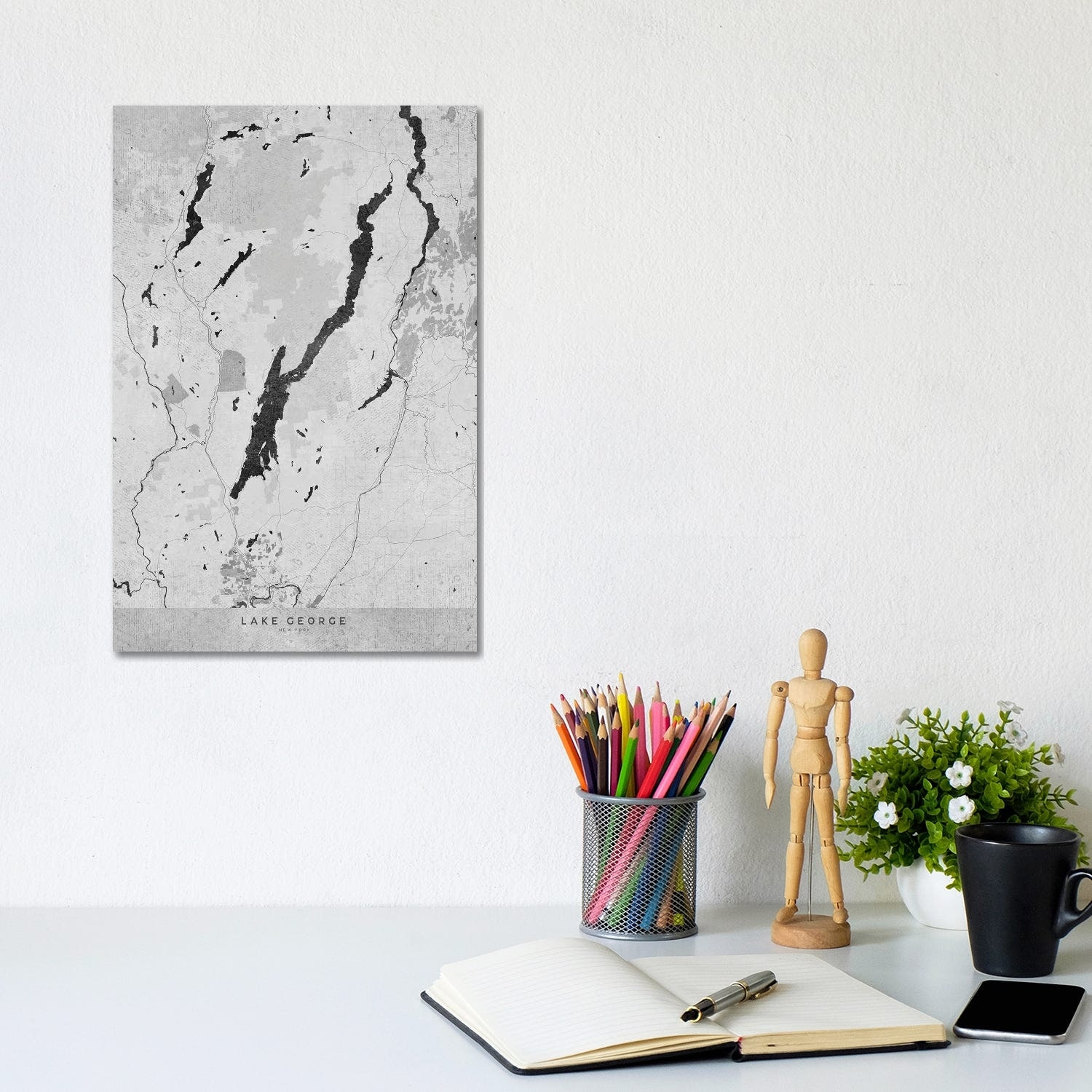 iCanvas "Gray Vintage Map of Lake George Ny" by blursbyai Canvas Print