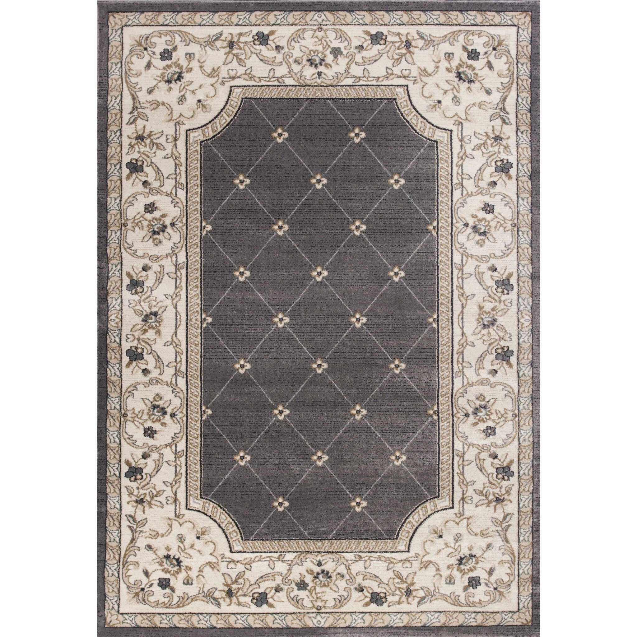 HomeRoots 5'x8' Grey Ivory Bordered Floral Area Rug - 5' Octagon