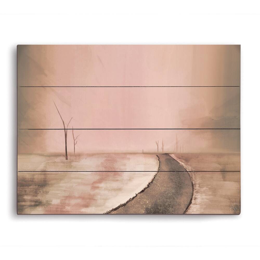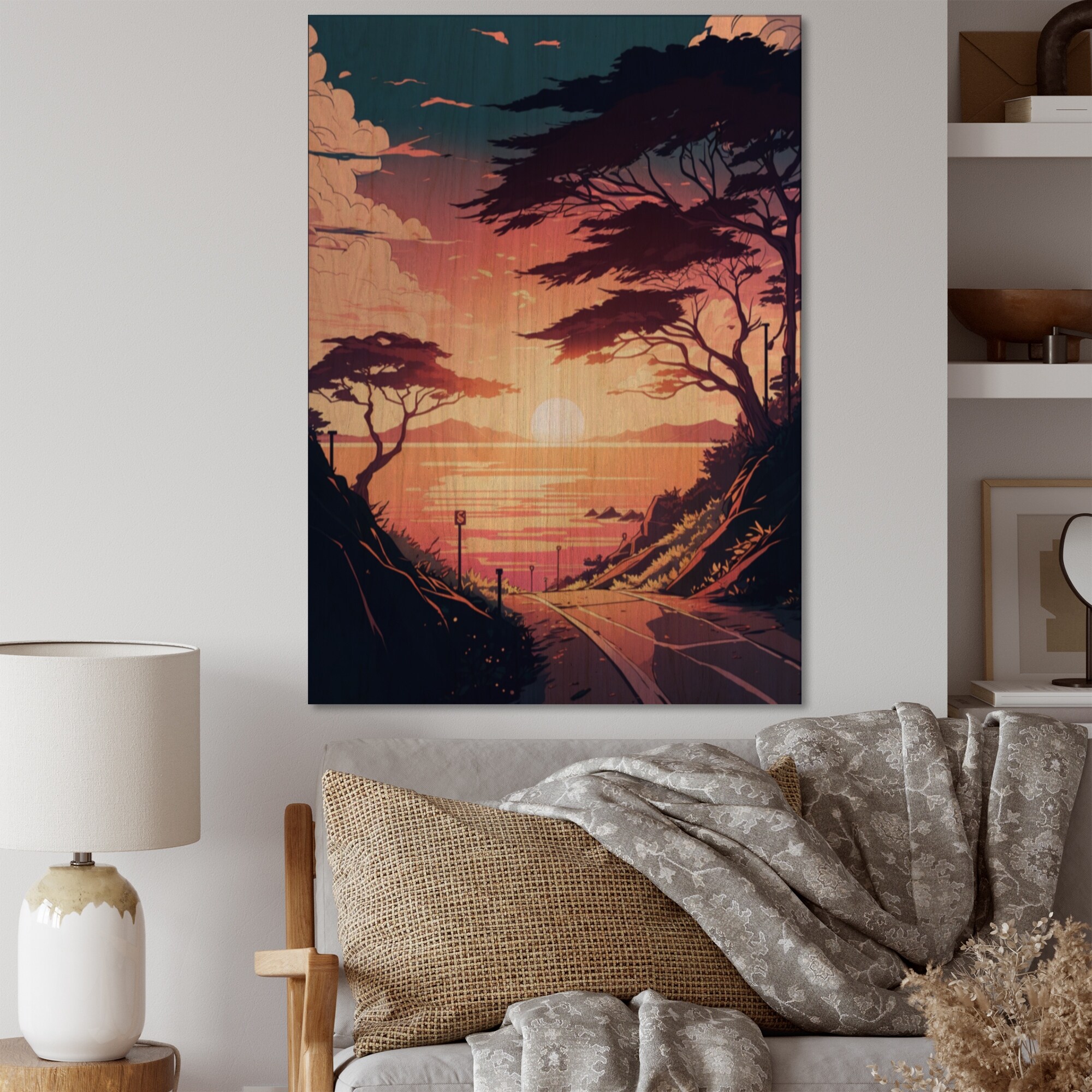 Designart 'Road To the Sunset VII' Modern Landscape Beach Wood Wall Art - Natural Pine Wood