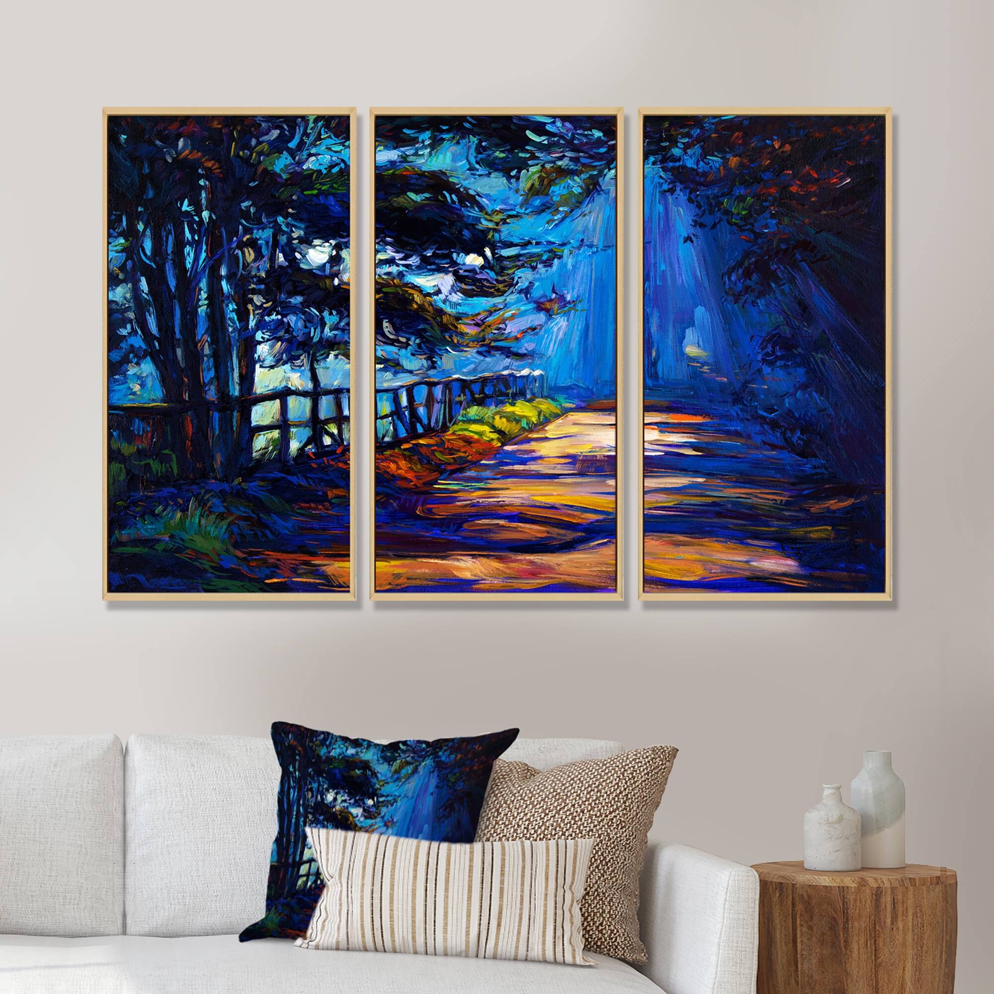 Designart "Shadows In the Afternoon on Park Road" Lake House Framed Artwork Set of 3 - 4 Colors of Frames