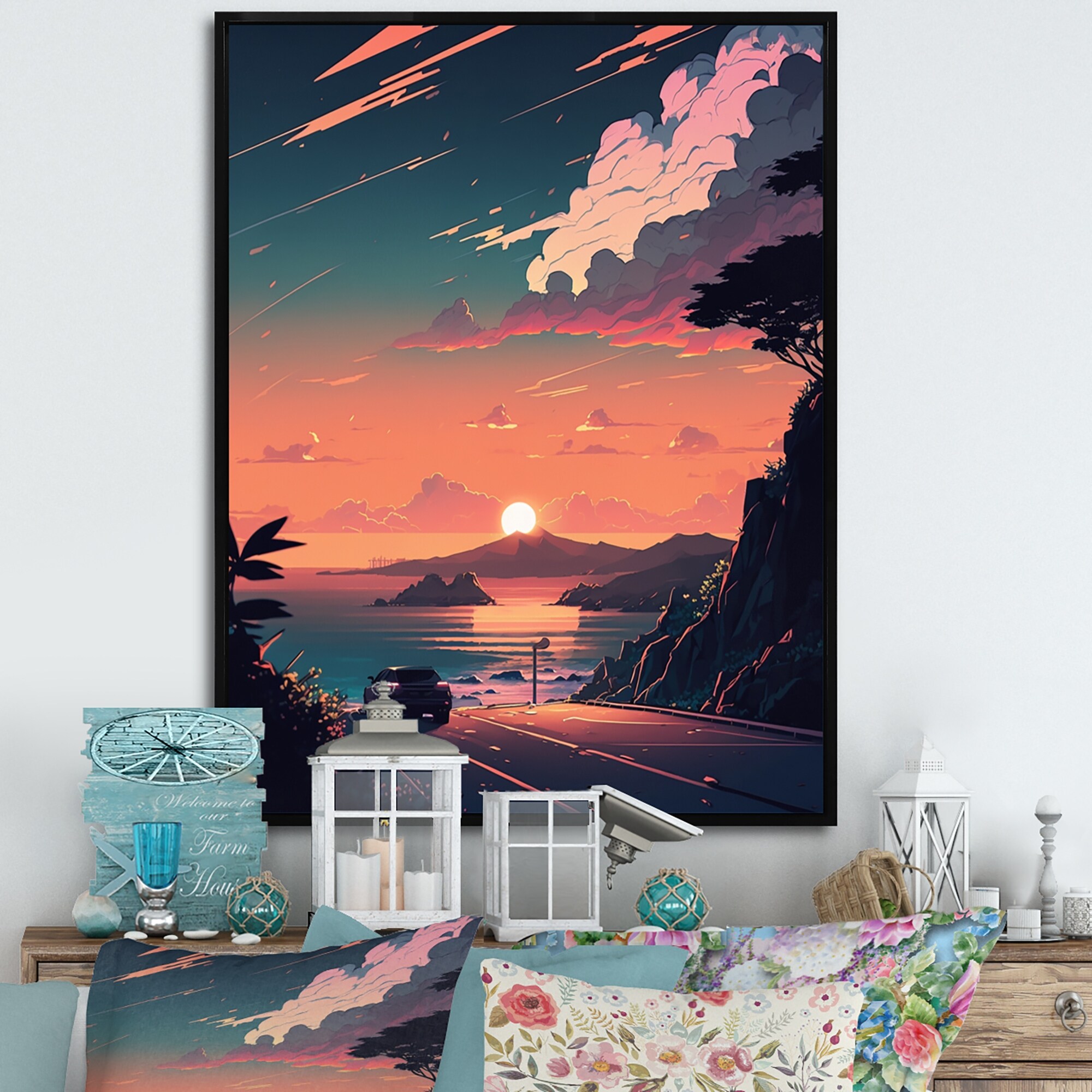 Designart "Road To the Sunset II" Landscape Framed Canvas Art Print