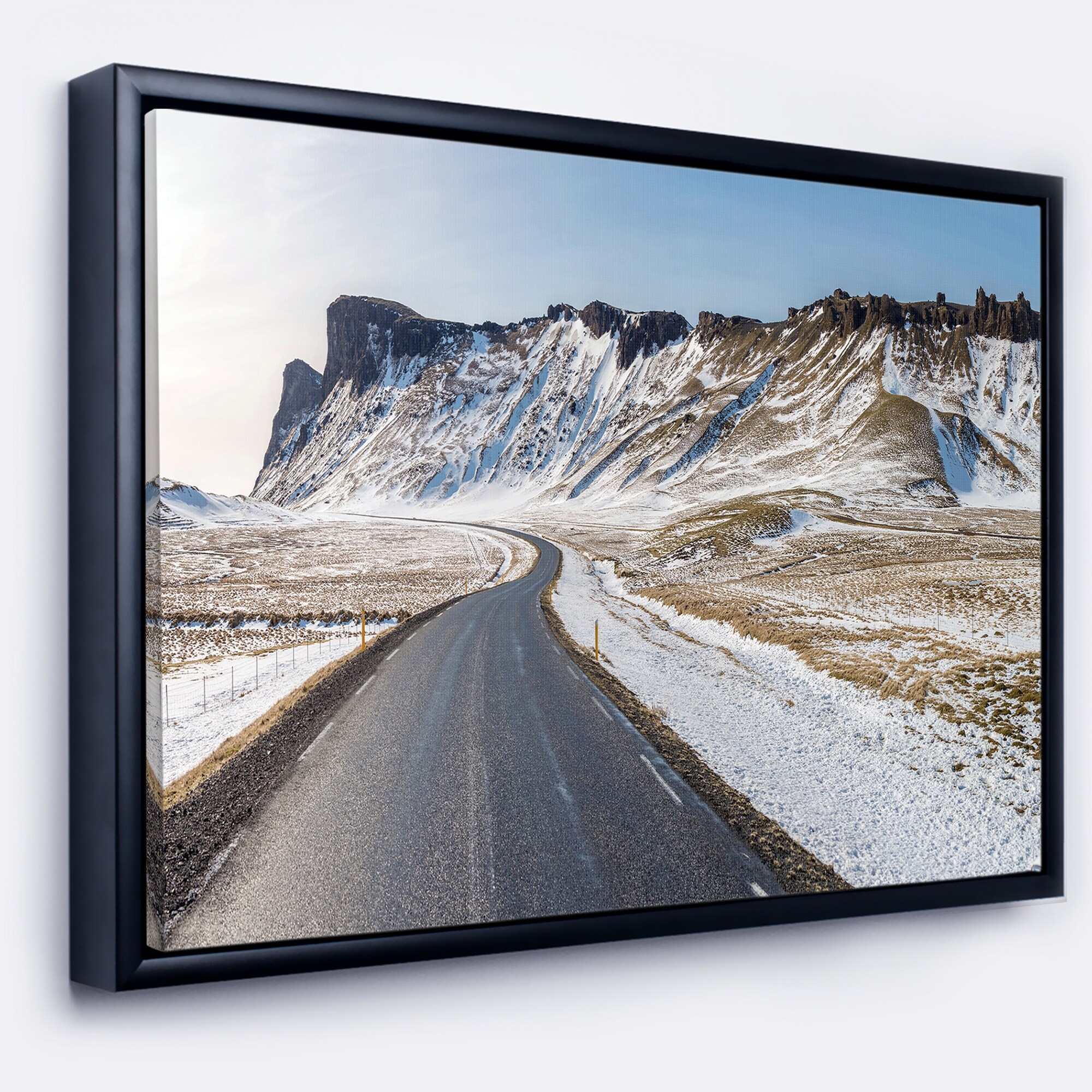 Designart "Range Road in Winter Mountains" Landscape Framed Canvas Art Print