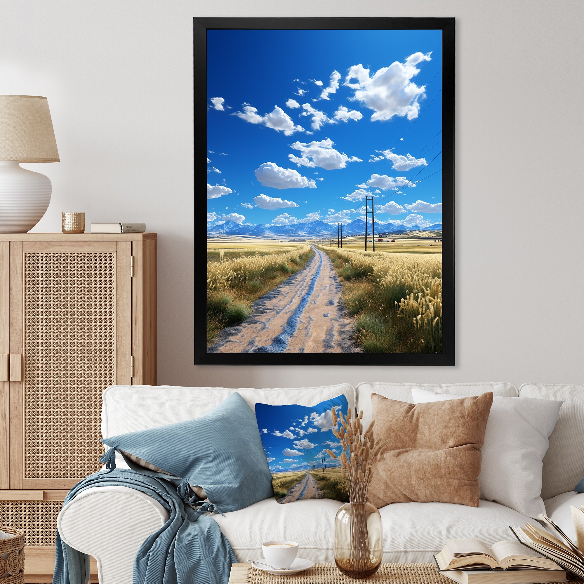 Designart "Lonely Road Through Prairies" Road Framed Wall Decor