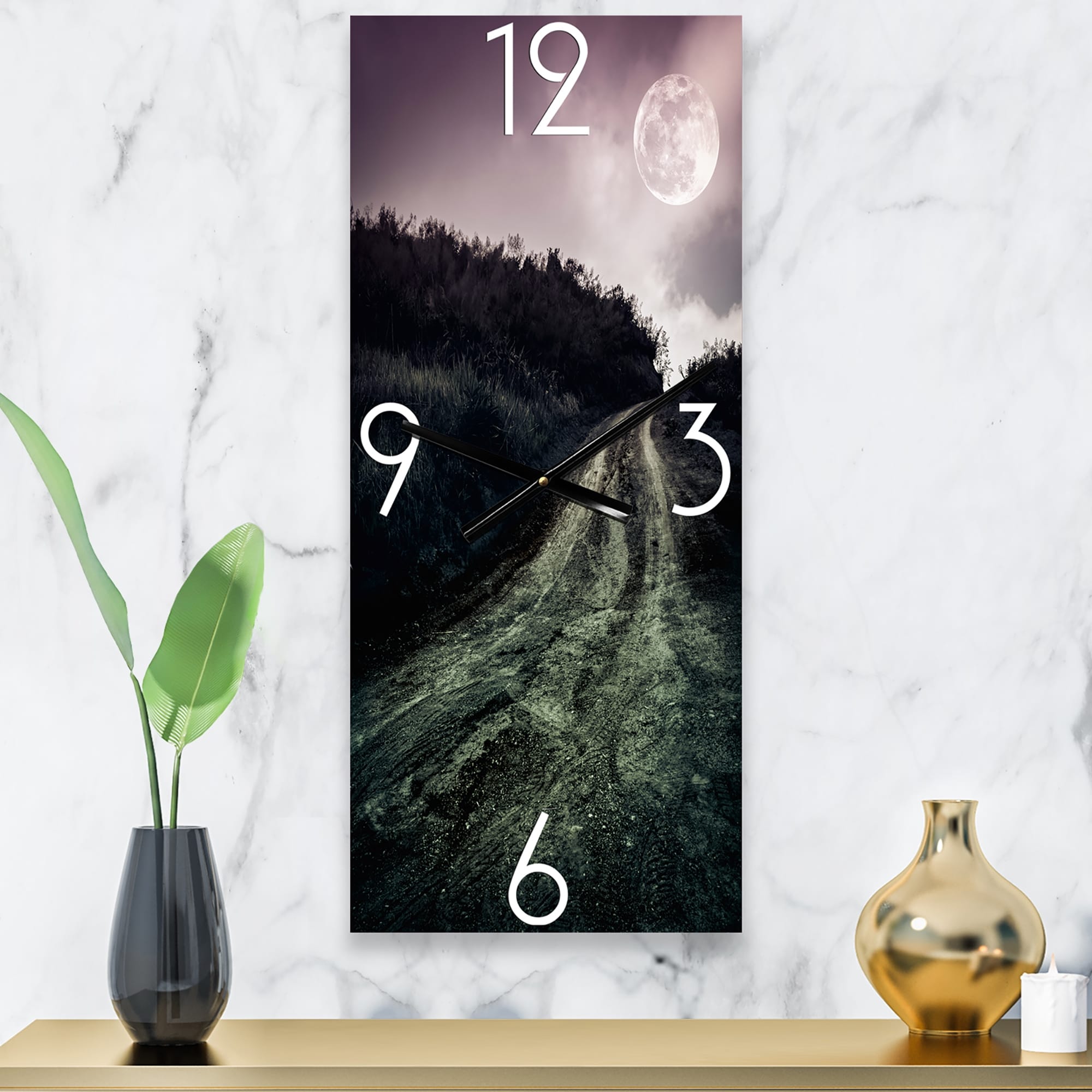 Designart 'Muddy Road Under Full Moon' Modern Wall Clock Decor