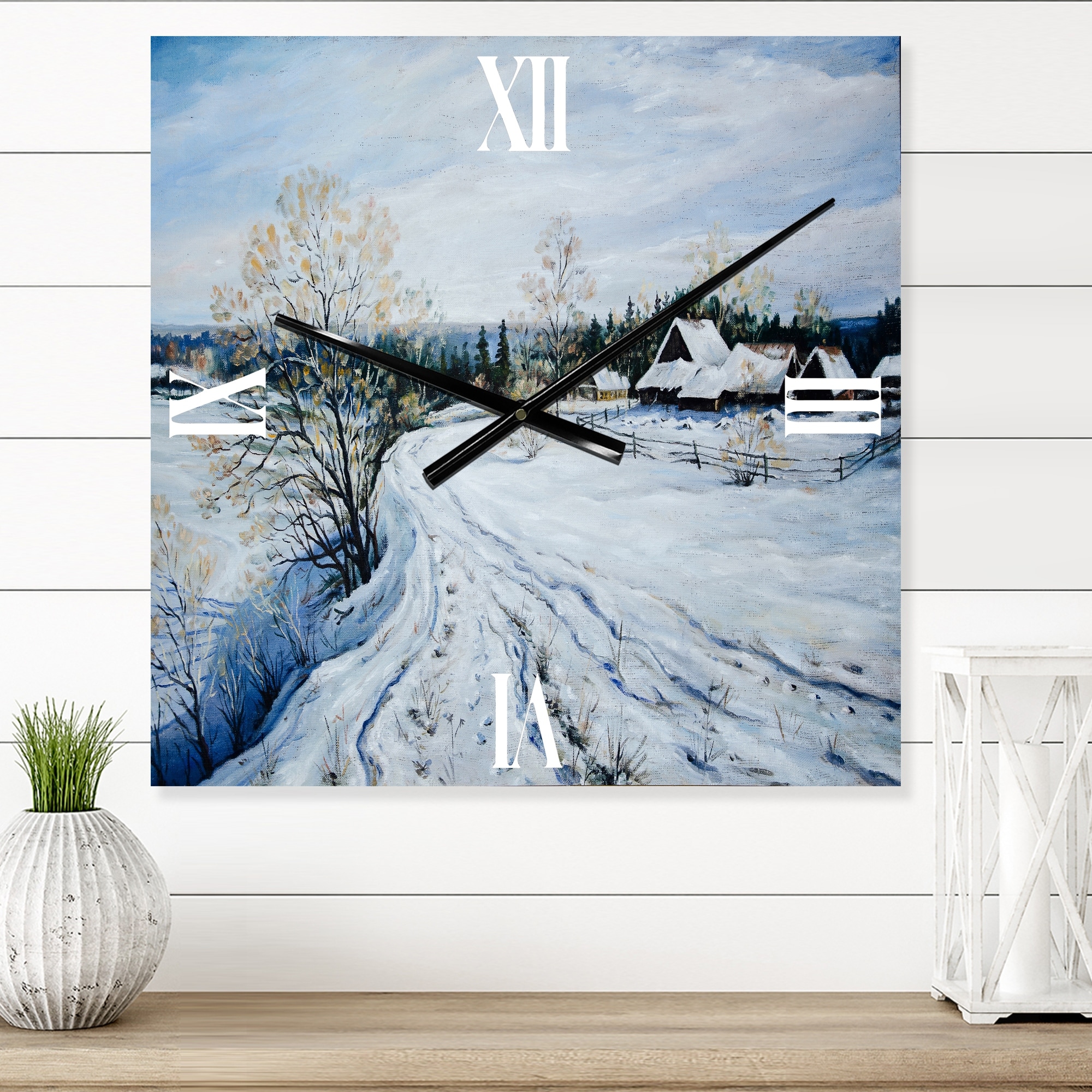 Designart 'Country Road in Winter Times II' Traditional wall clock