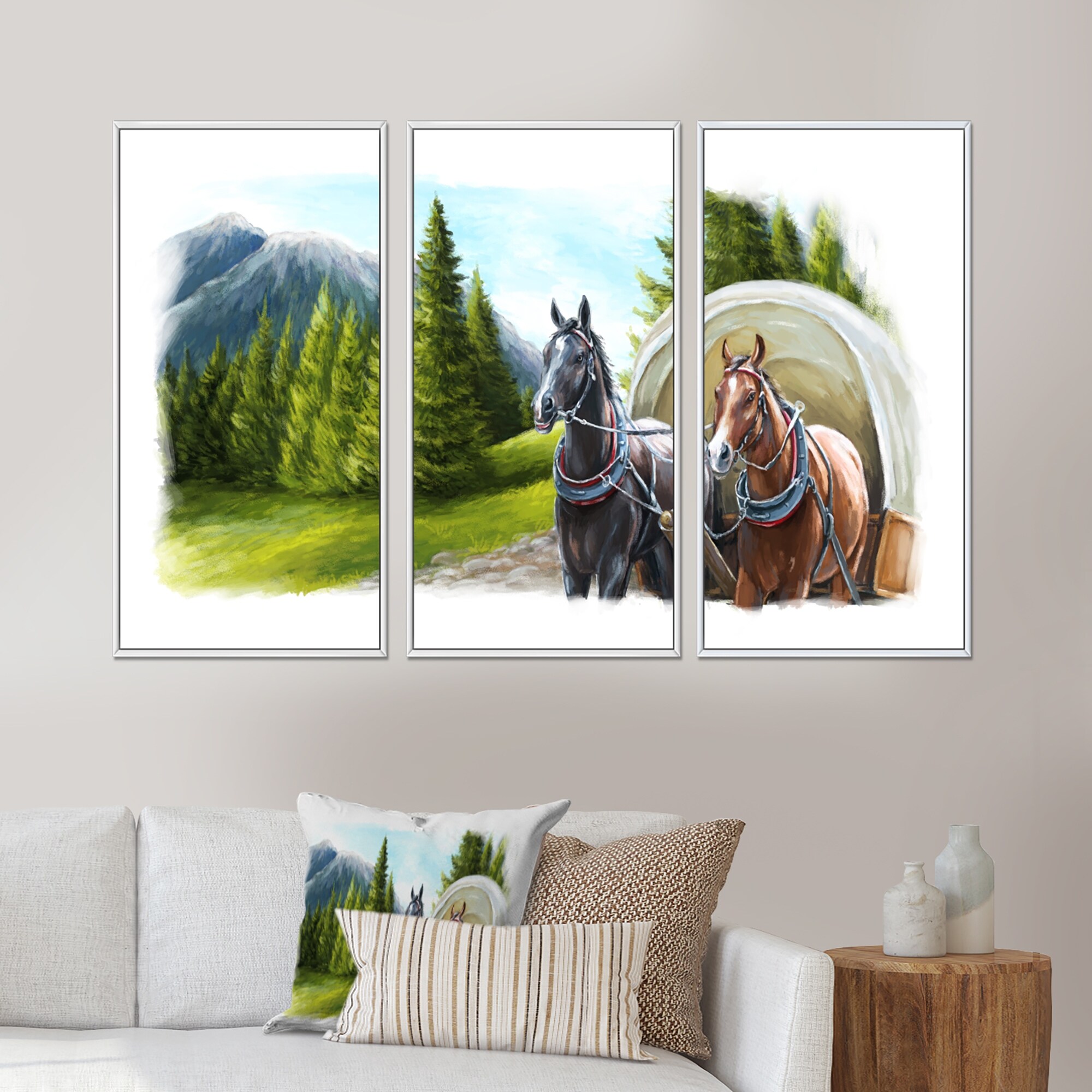 Designart "Road in Mountains with Horses" Landscape Framed Art Prints Set of 3 - 4 Colors of Frames