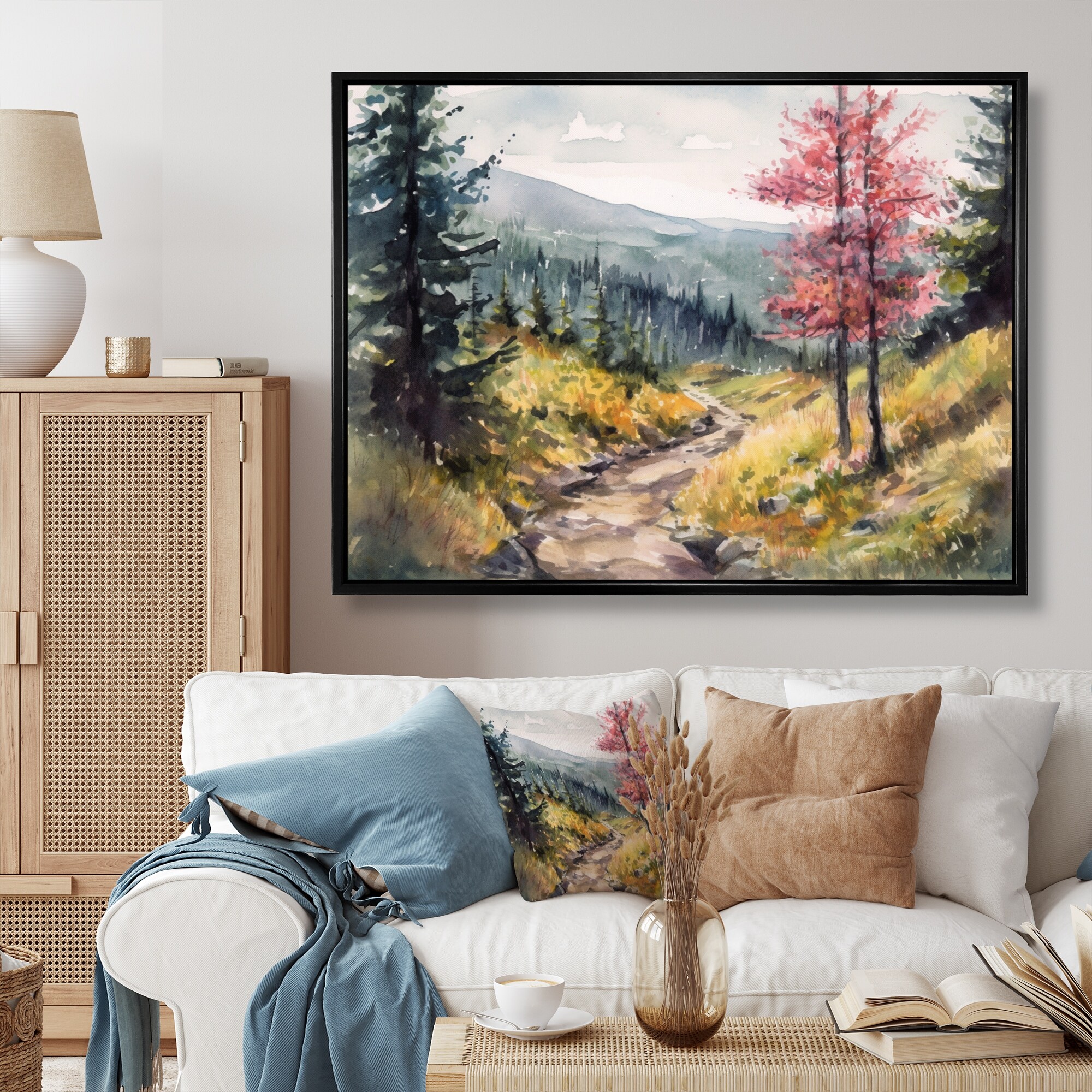 Designart "Little Road in Mountain Landscape IX" Forest Framed Wall Art Living Room