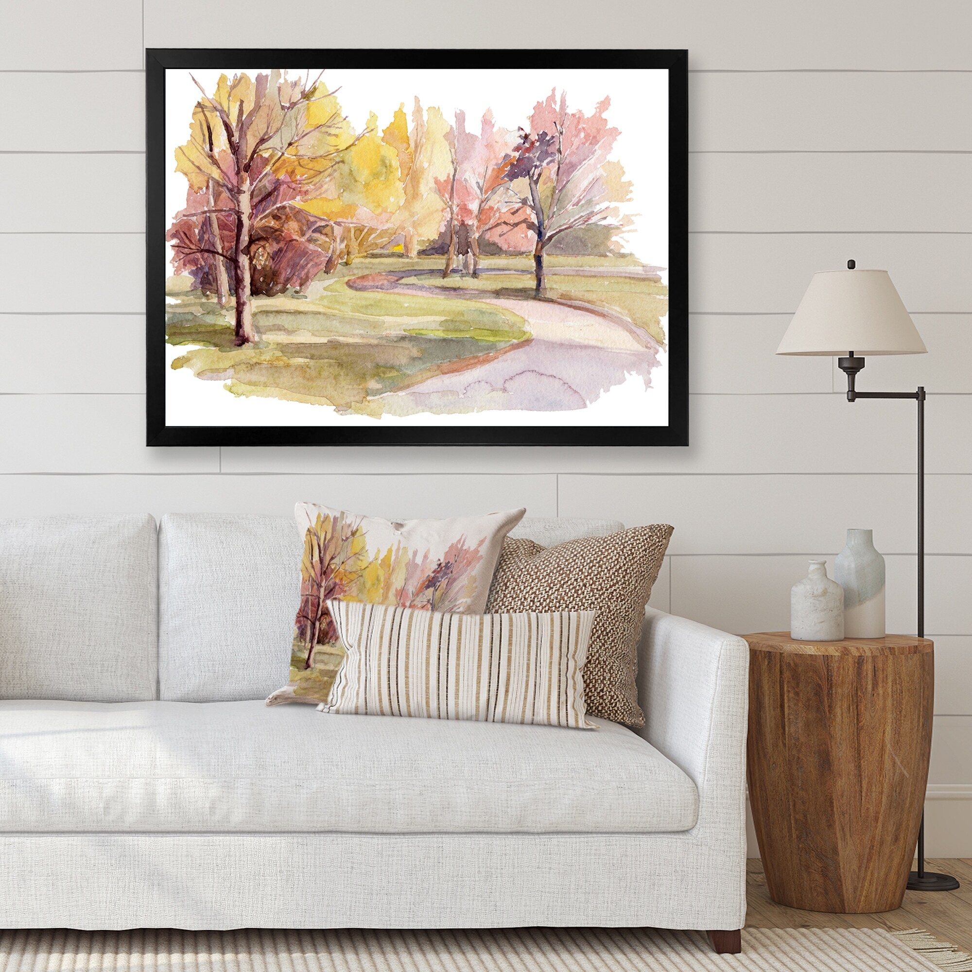 Designart "Park Road With Autumn Trees" Country Framed Art Print