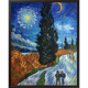 La Pastiche Road with Cypress and Star with Black Floater Frame ,21.5"x 25.5"
