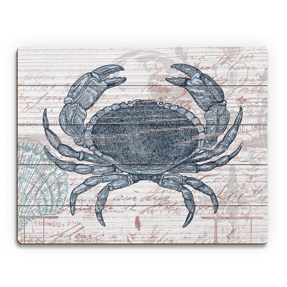 'Vintage Blue Crab' Wood Abstract Wall Art