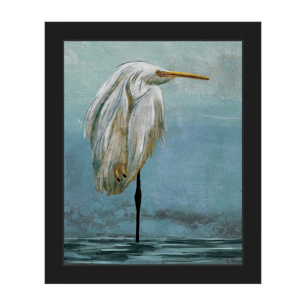 'Lonely Crane' Blue Canvas Framed Wall Art