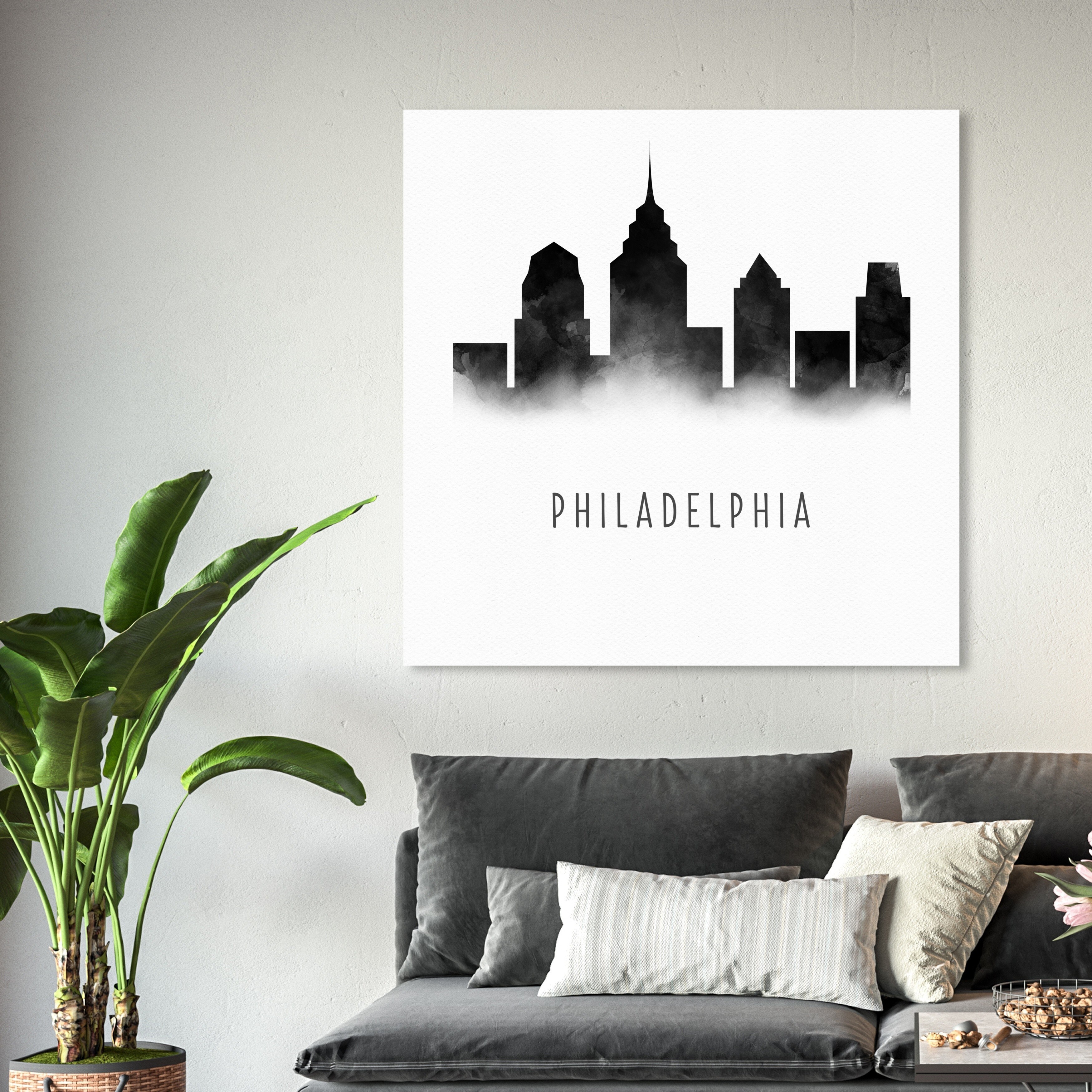 Oliver Gal 'Philadelphia Watercolor' Cities and Skylines Wall Art Canvas Print - Black, White