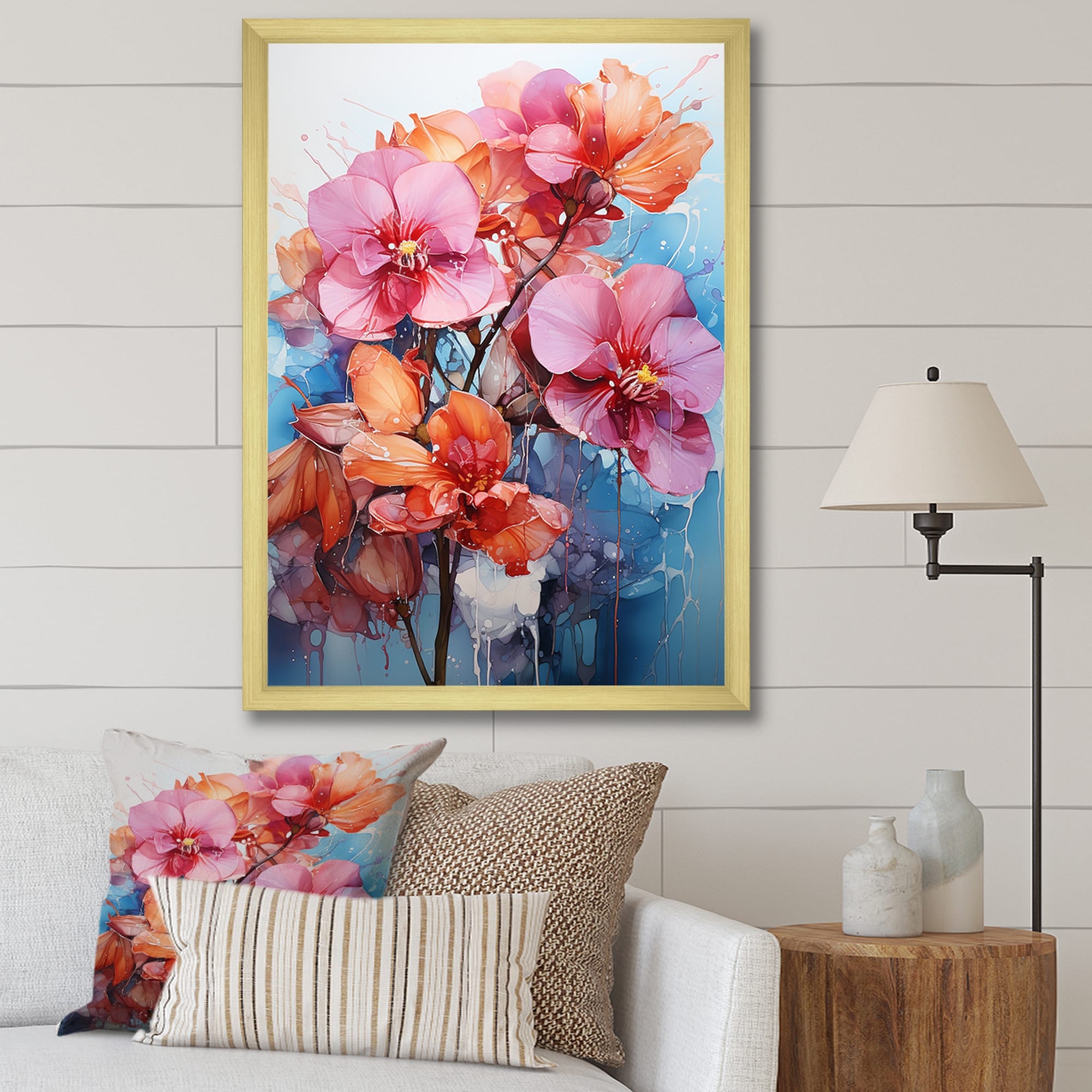 Designart "Red Orchids Representation Multicolored Acrylic I" Orchids Framed Wall Art Prints