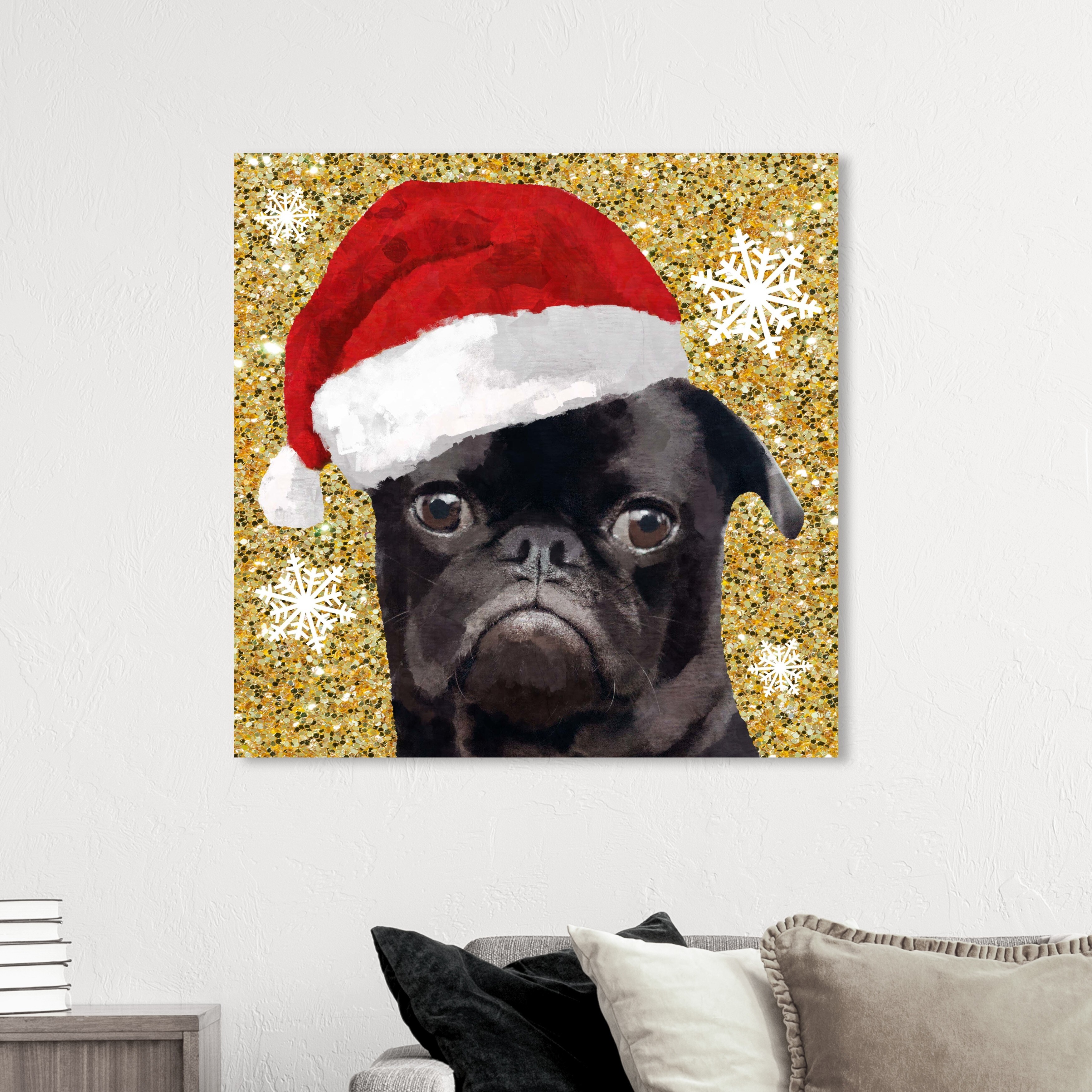 Oliver Gal 'Holiday Pug Gold' Animals Red Wall Art Canvas Print